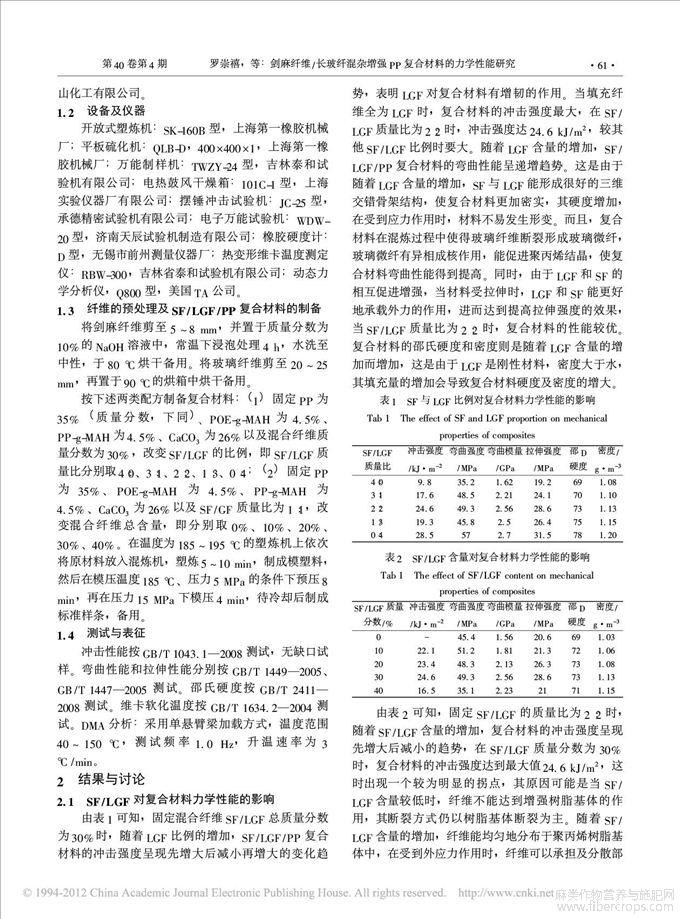 剑麻纤维_长玻纤混杂增强PP复合材料的力学性能研究