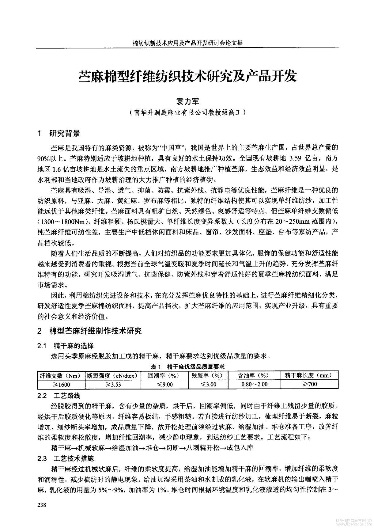苎麻棉型纤维纺织技术研究及产品开发(会议论文)