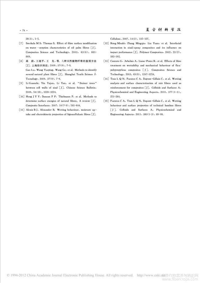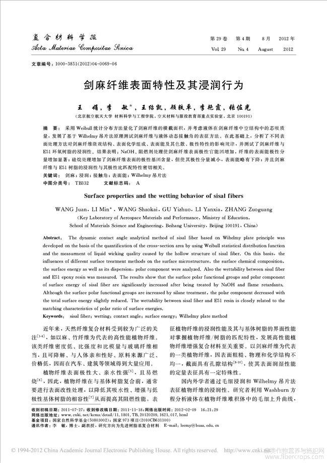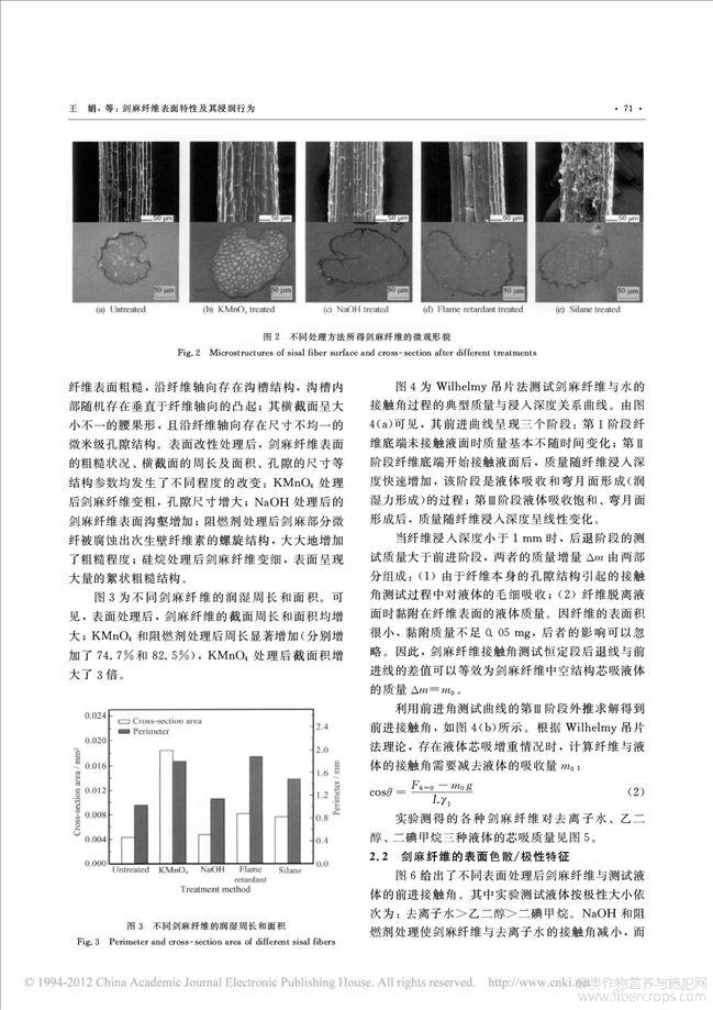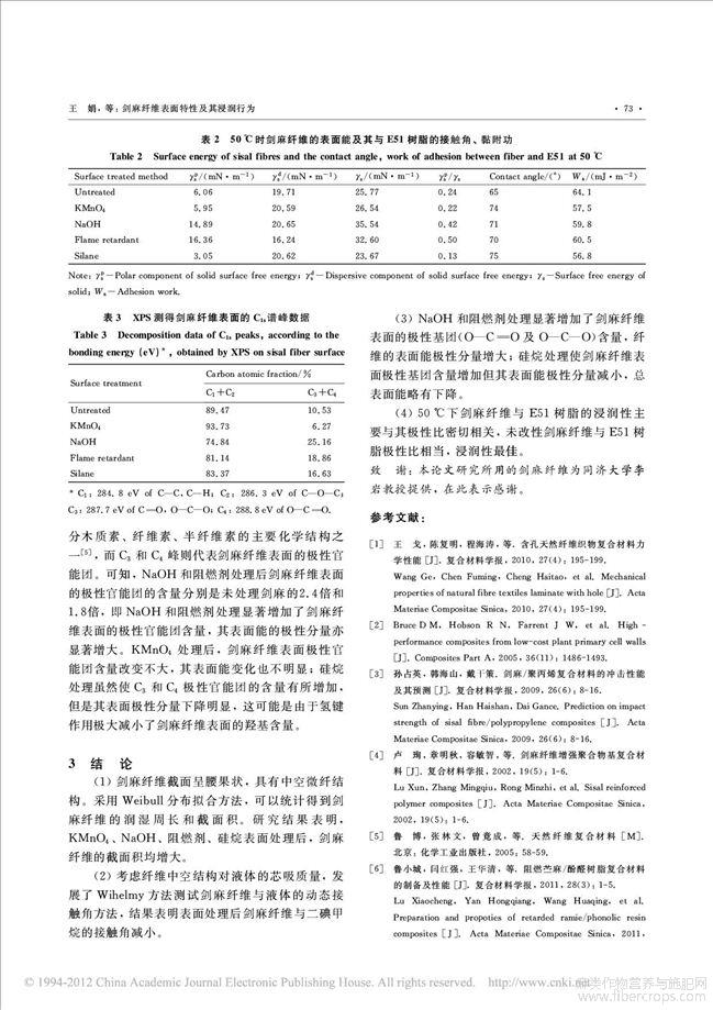 剑麻纤维表面特性及其浸润行为