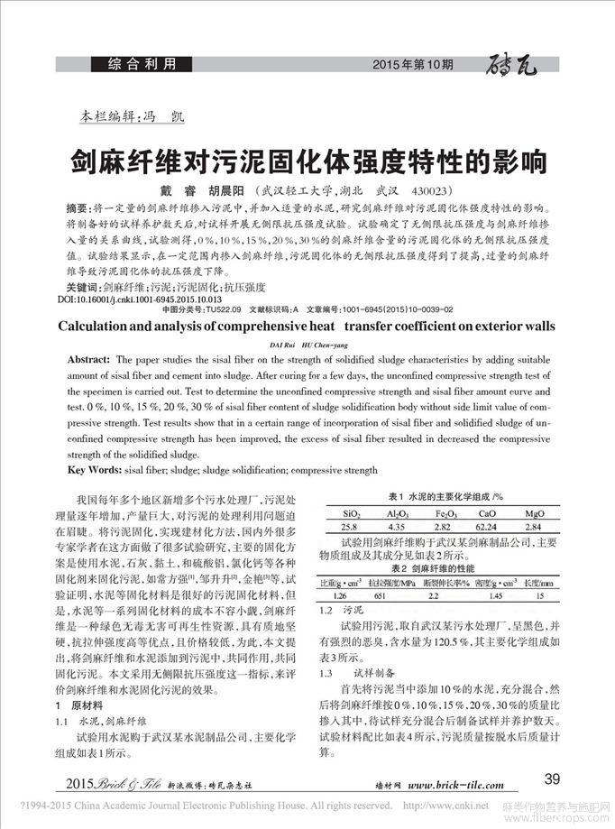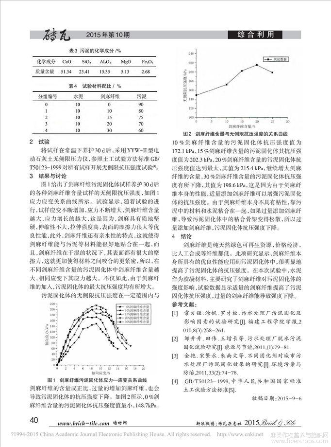 剑麻纤维对污泥固化体强度特性的影响