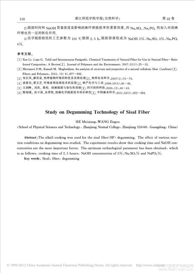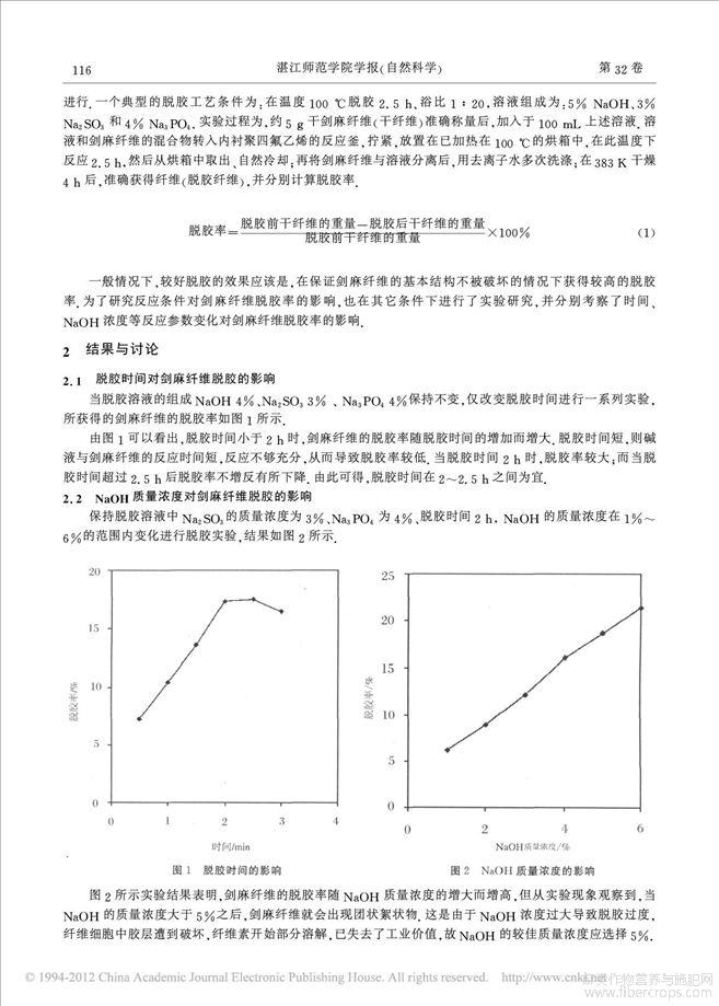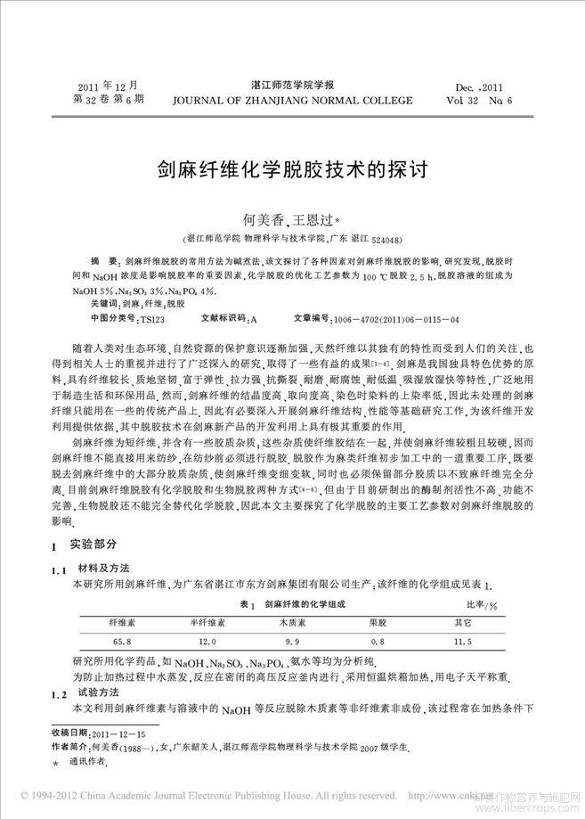 剑麻纤维化学脱胶技术的探讨
