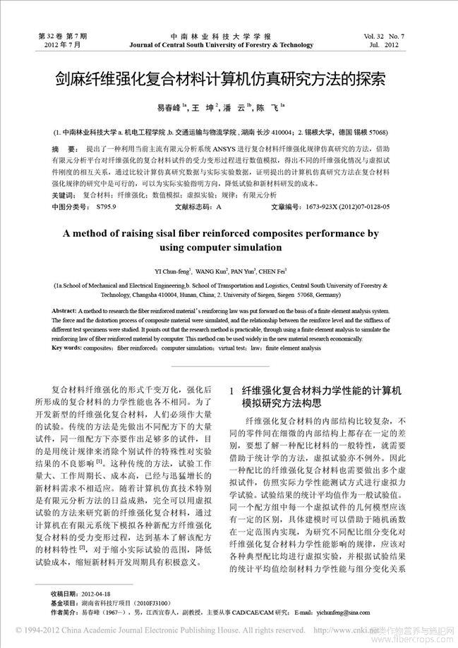 剑麻纤维强化复合材料计算机仿真研究方法的探索