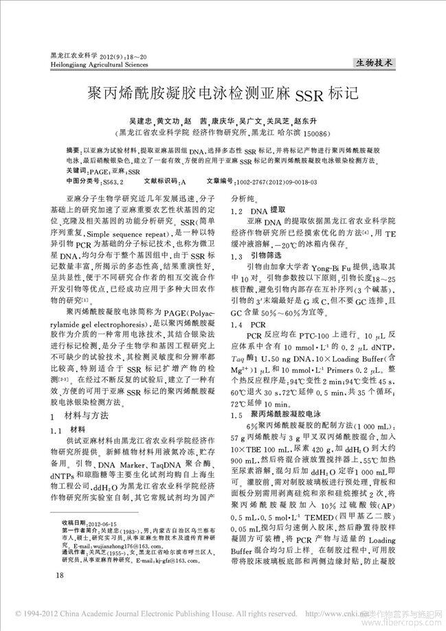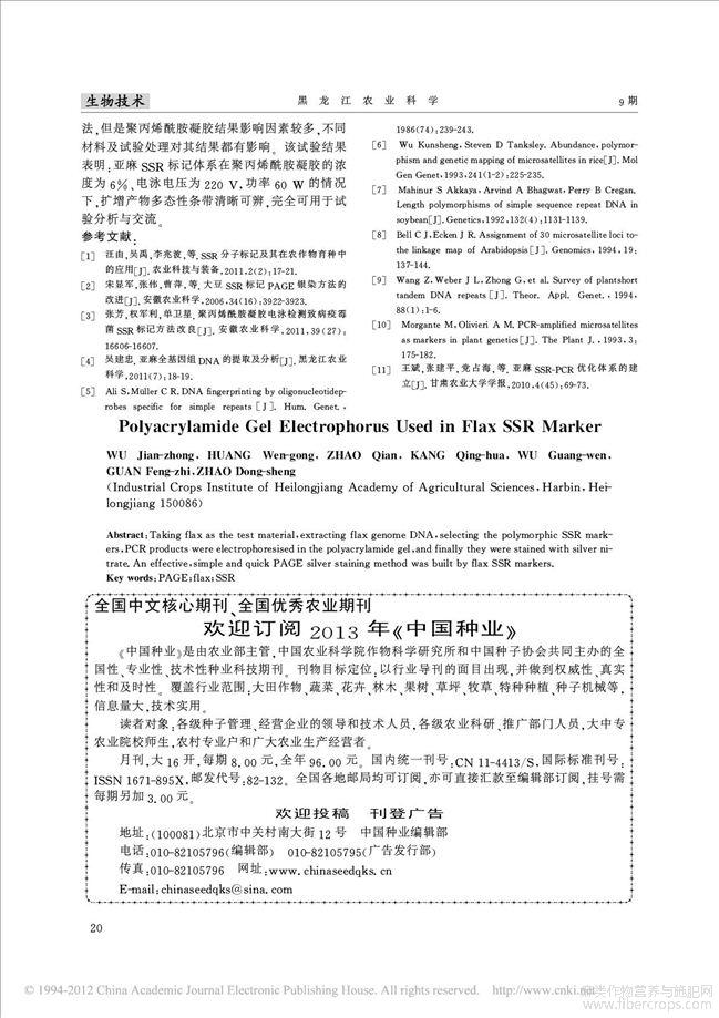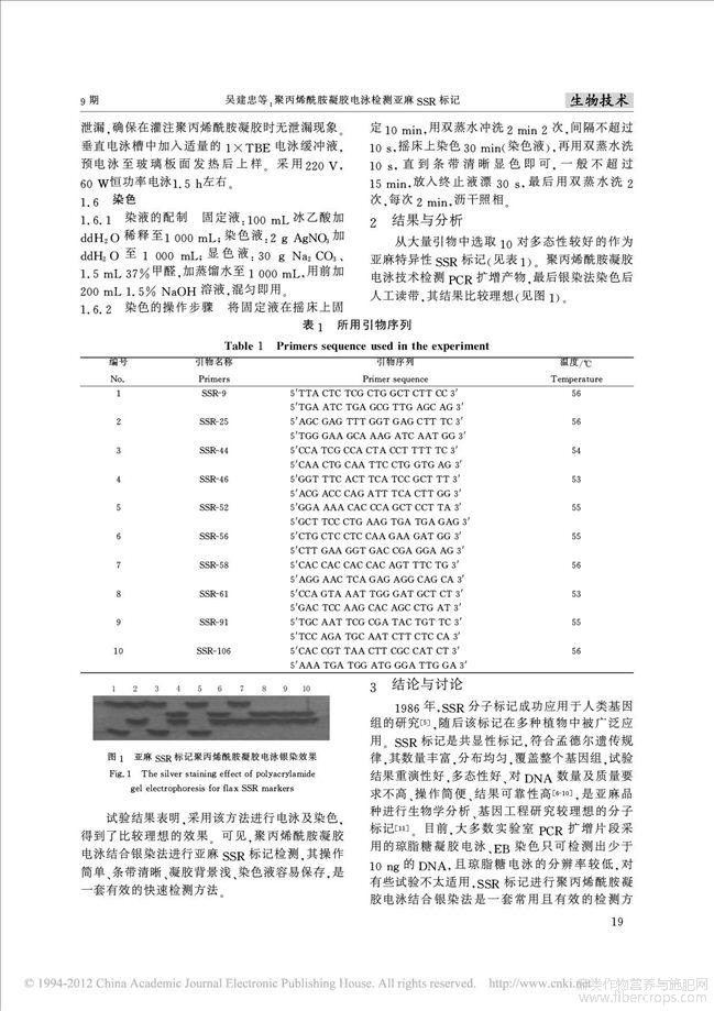 聚丙烯酰胺凝胶电泳检测亚麻SSR标记