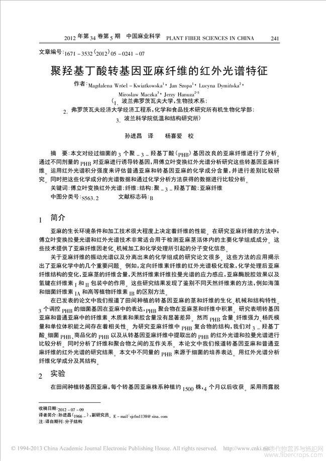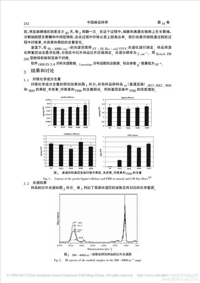 聚羟基丁酸转基因亚麻纤维的红外光谱特征