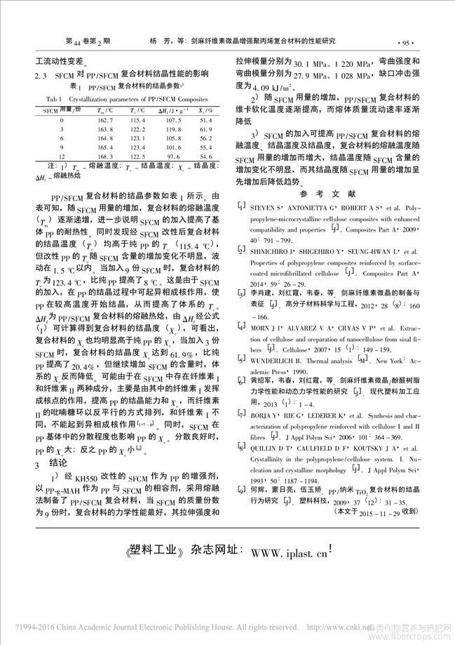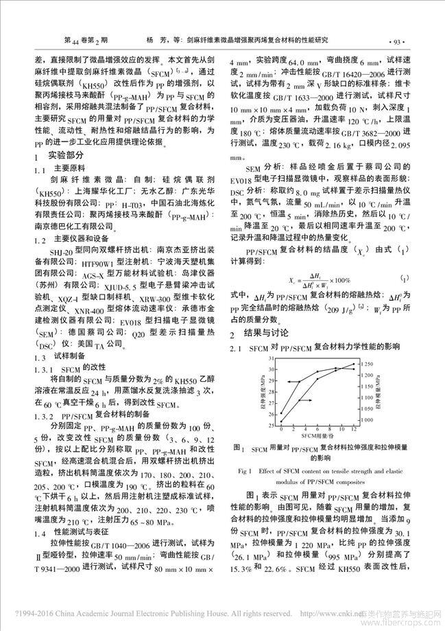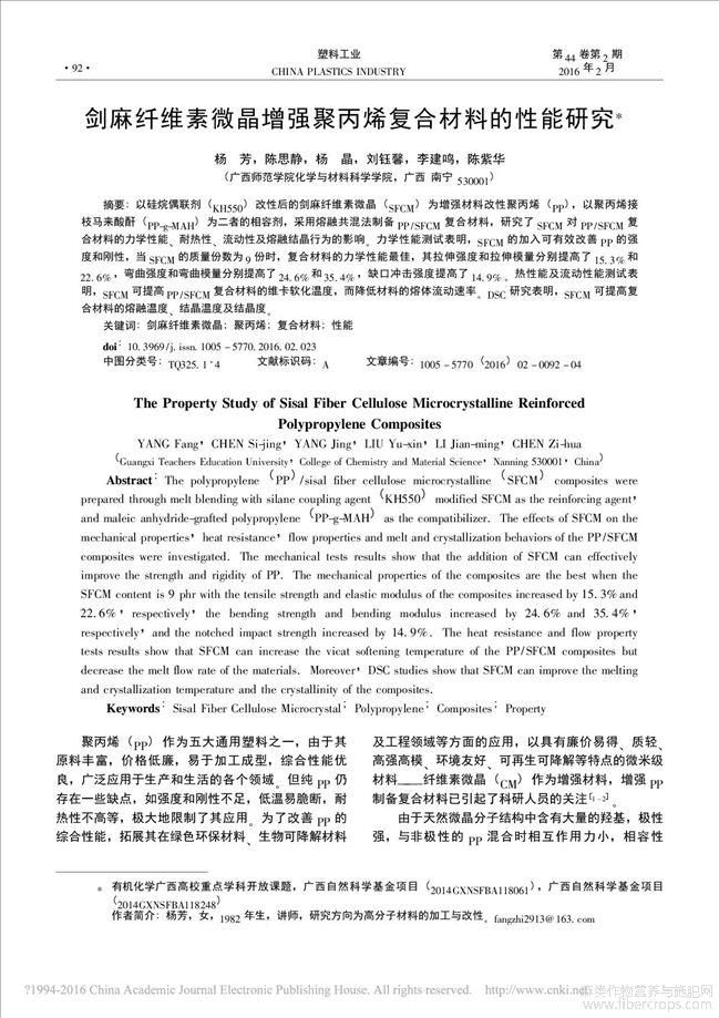 剑麻纤维素微晶增强聚丙烯复合材料的性能研究