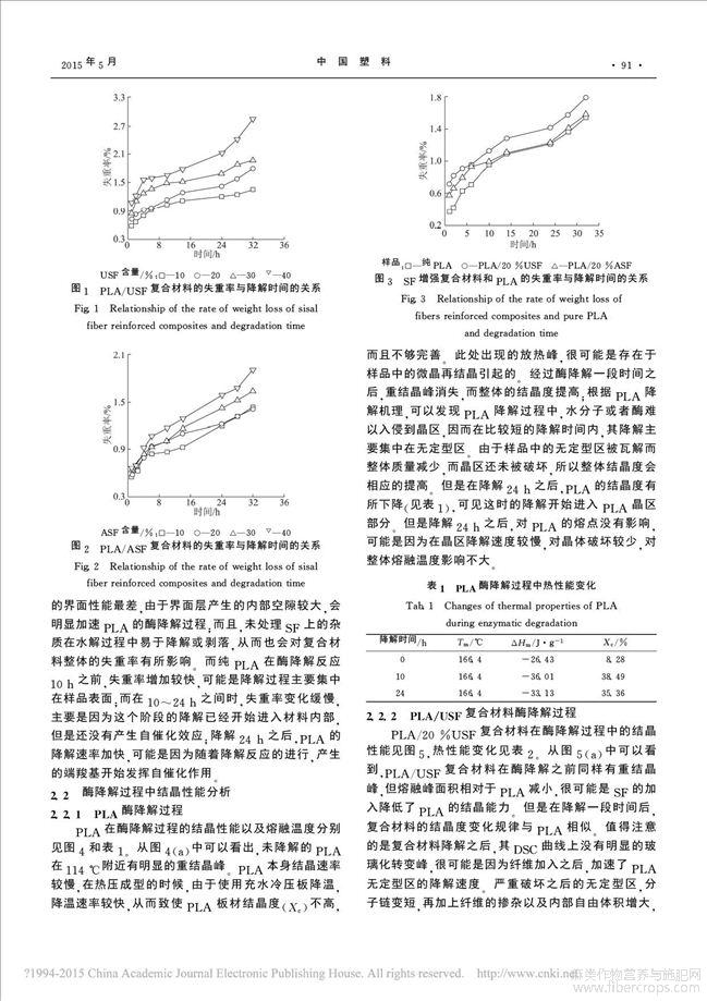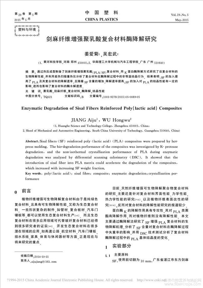 剑麻纤维增强聚乳酸复合材料酶降解研究
