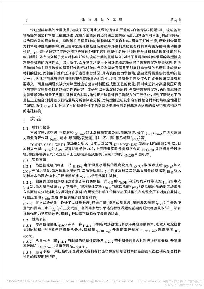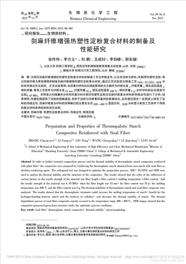 剑麻纤维增强热塑性淀粉复合材料的制备及性能研究