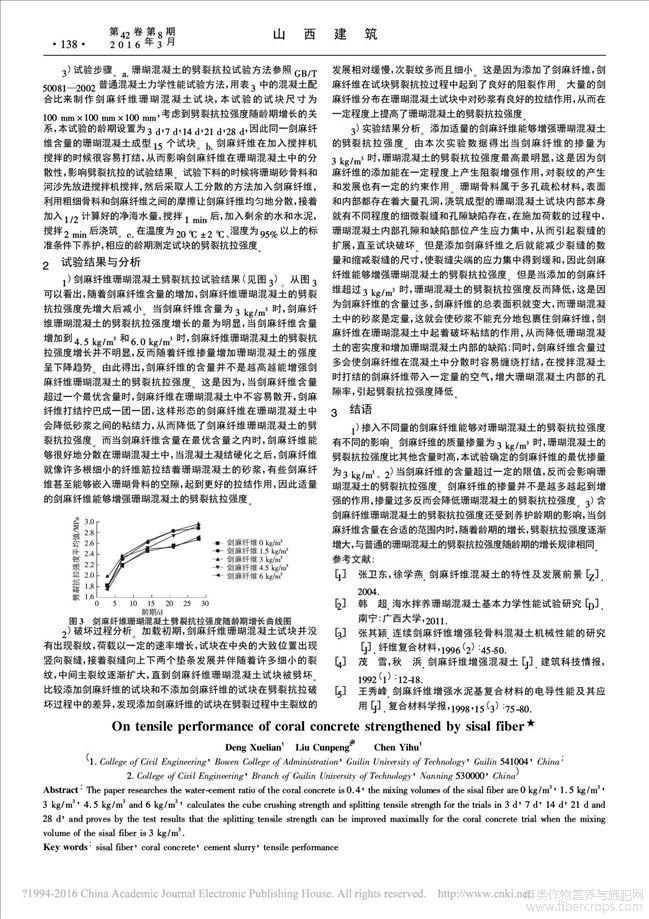 剑麻纤维增强珊瑚混凝土抗拉性能研究