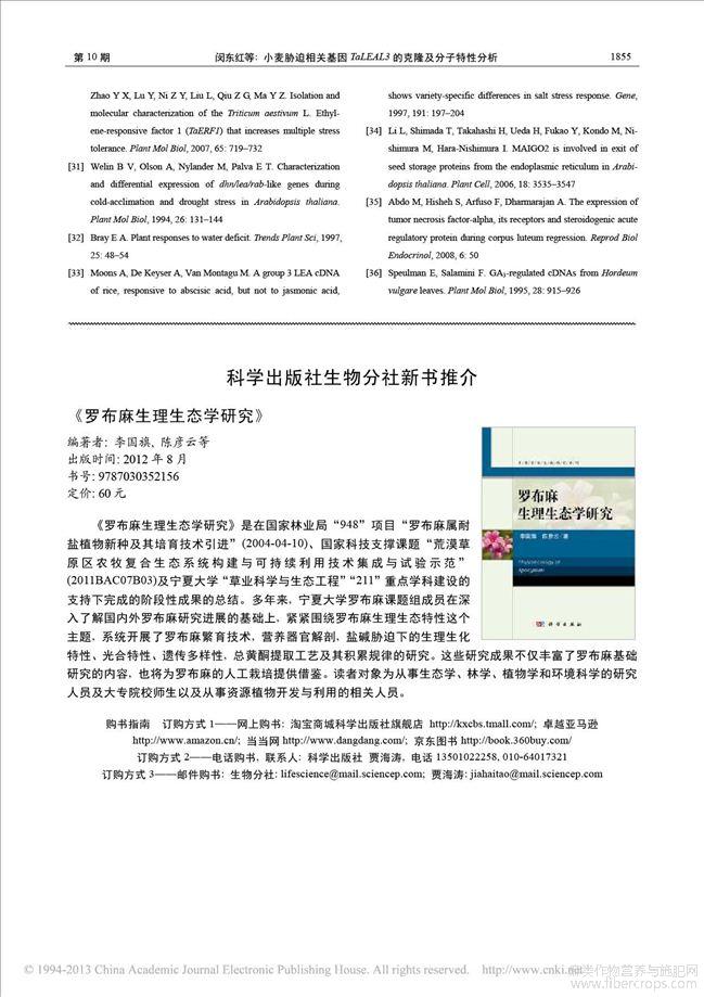 科学出版社生物分社新书推介_罗布麻生理生态学研究