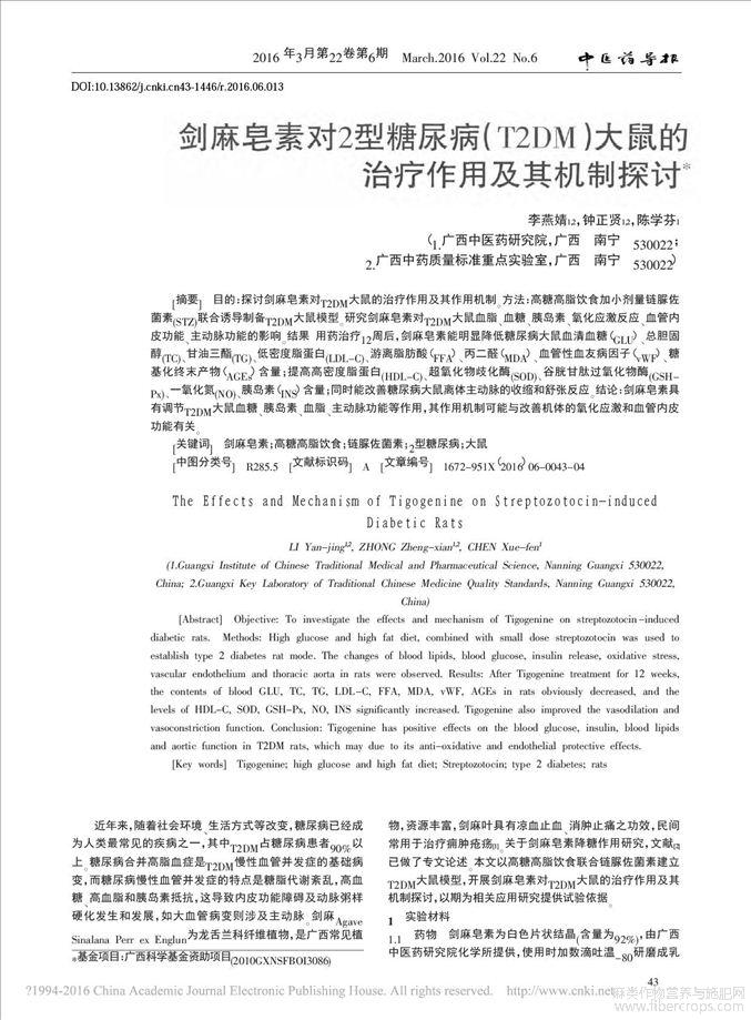 剑麻皂素对2型糖尿病_T2DM_大鼠的治疗作用及其机制探讨