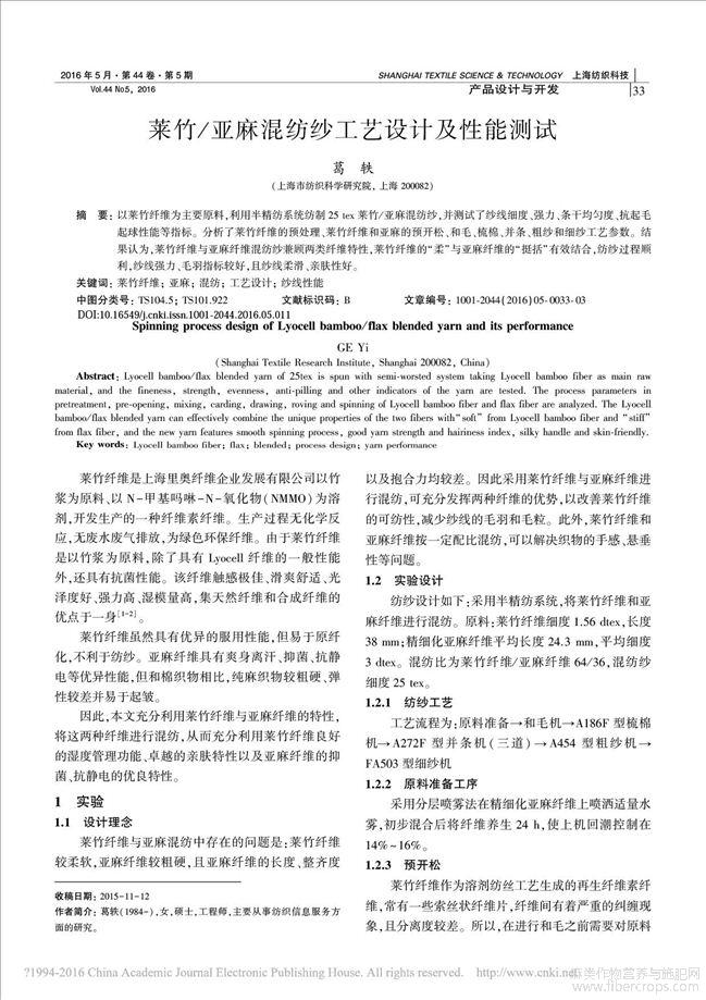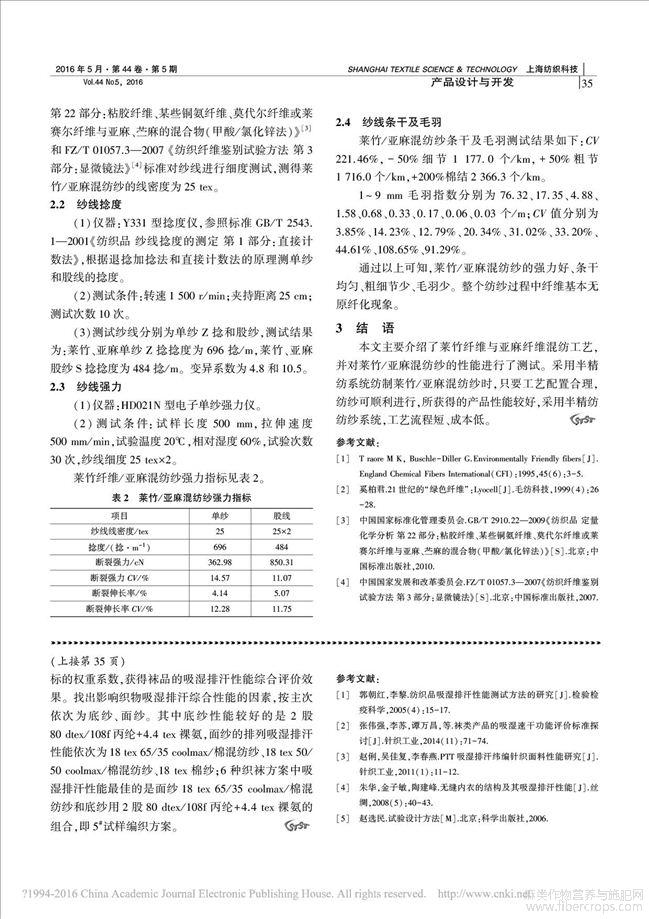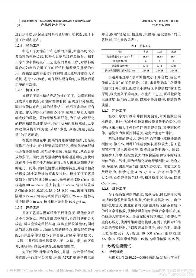 莱竹_亚麻混纺纱工艺设计及性能测试