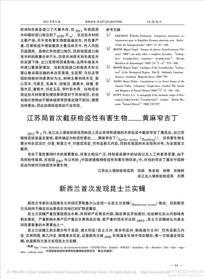 江苏局首次截获检疫性有害生物_黄麻窄吉丁