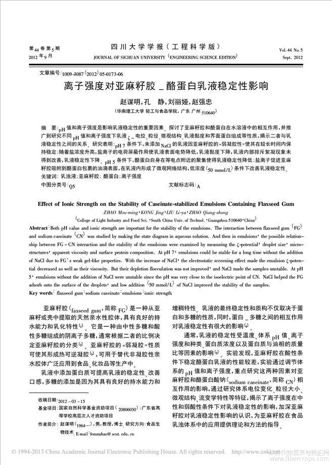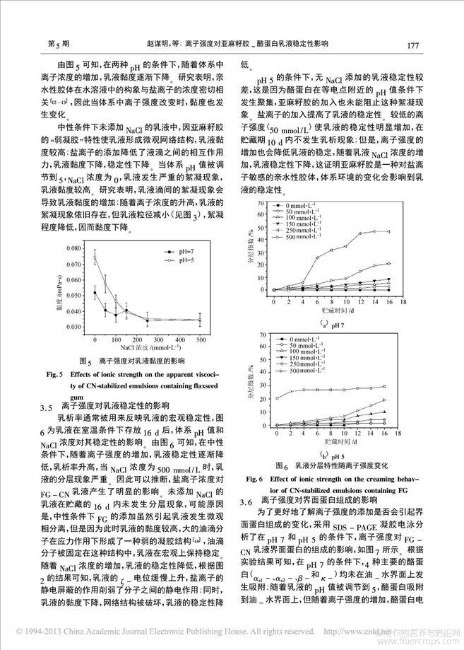 离子强度对亚麻籽胶_酪蛋白乳液稳定性影响