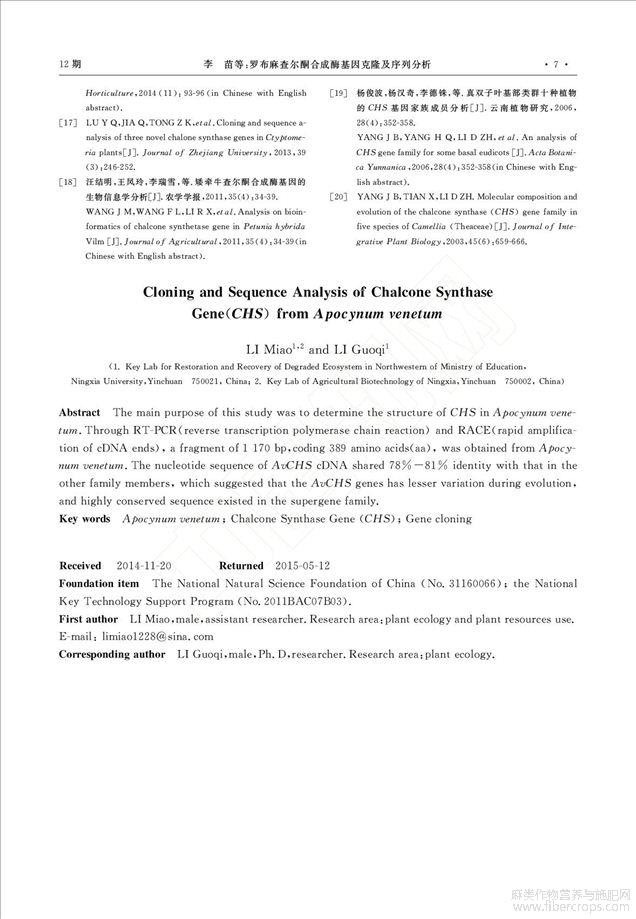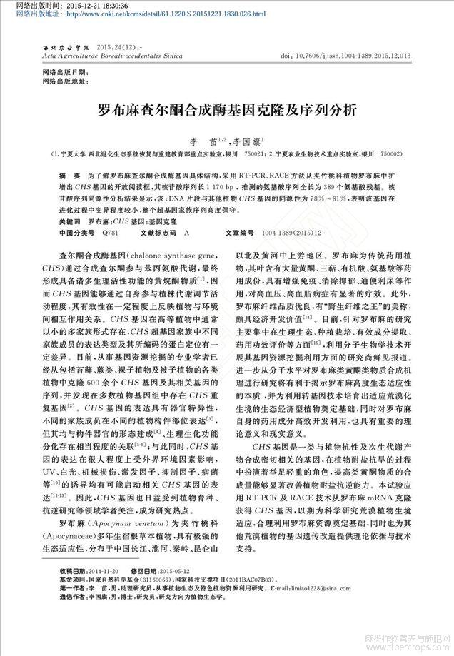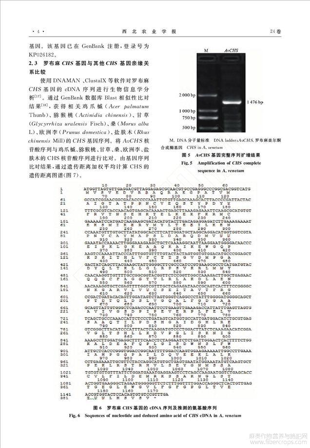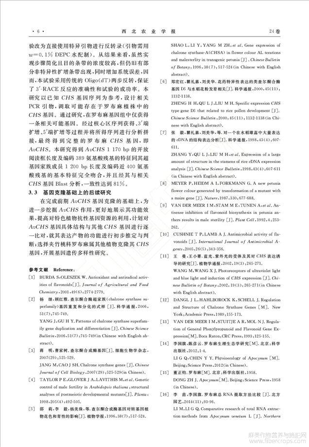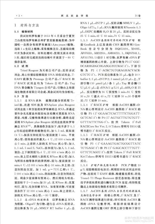罗布麻查尔酮合成酶基因克隆及序列分析