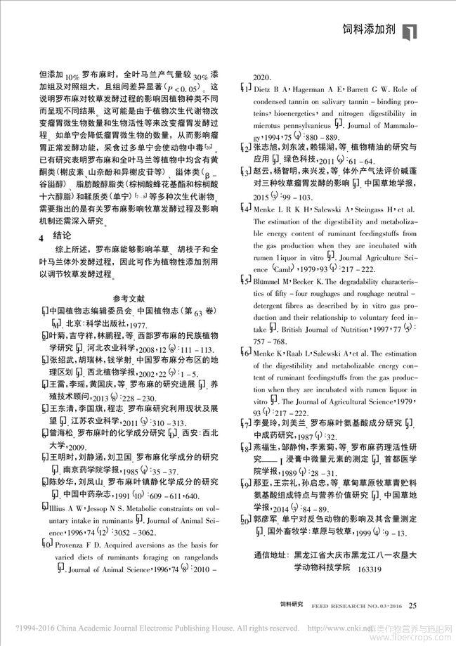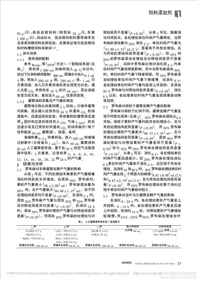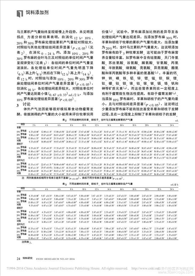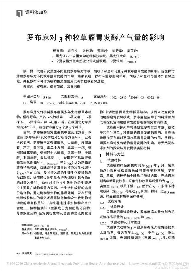罗布麻对3种牧草瘤胃发酵产气量的影响