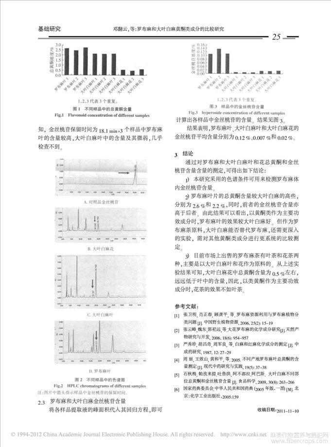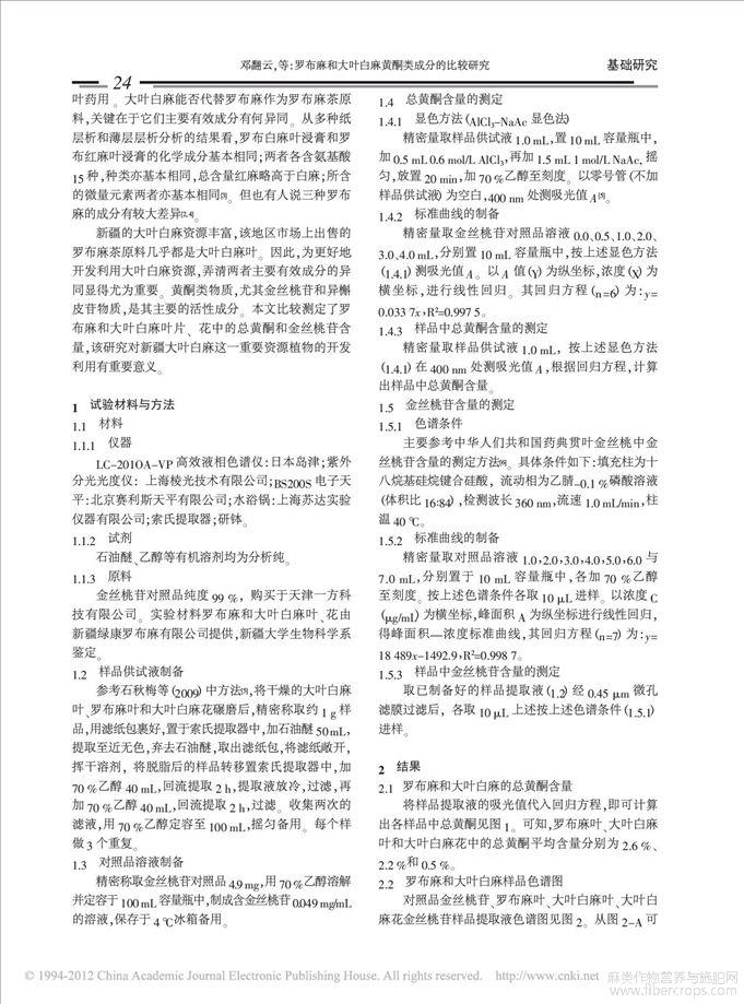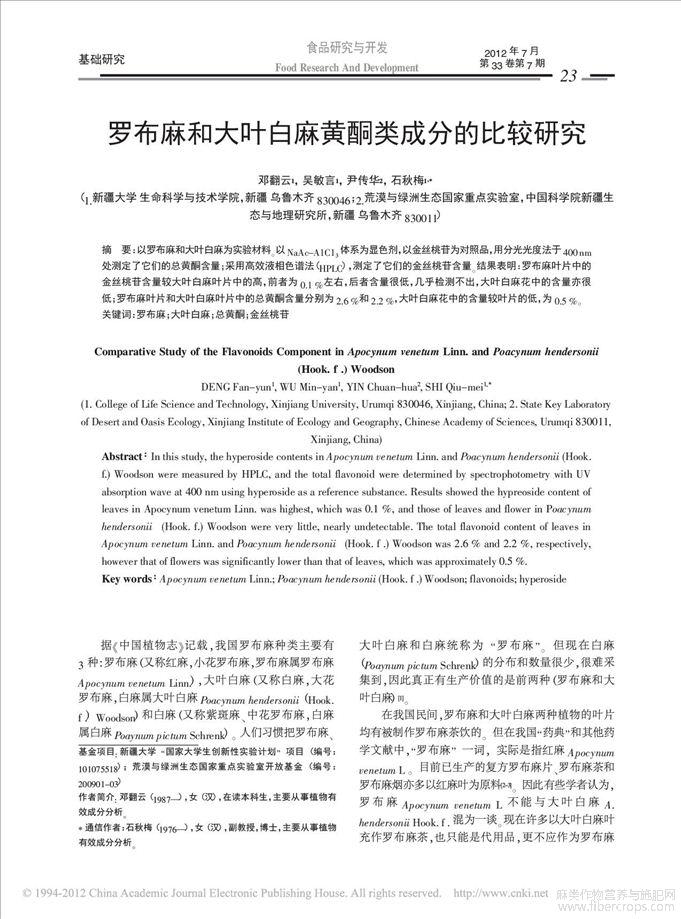 罗布麻和大叶白麻黄酮类成分的比较研究