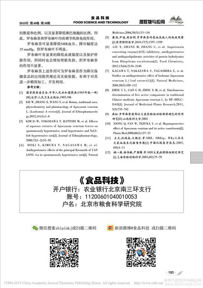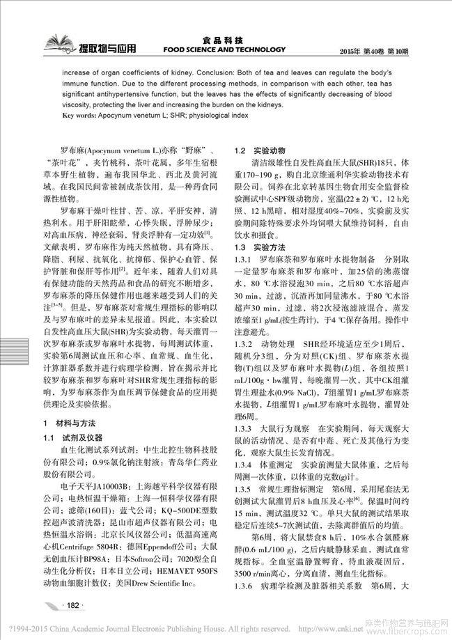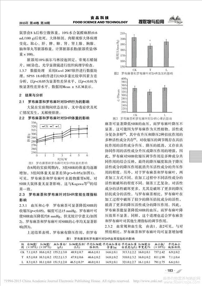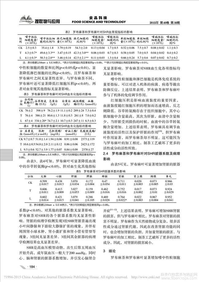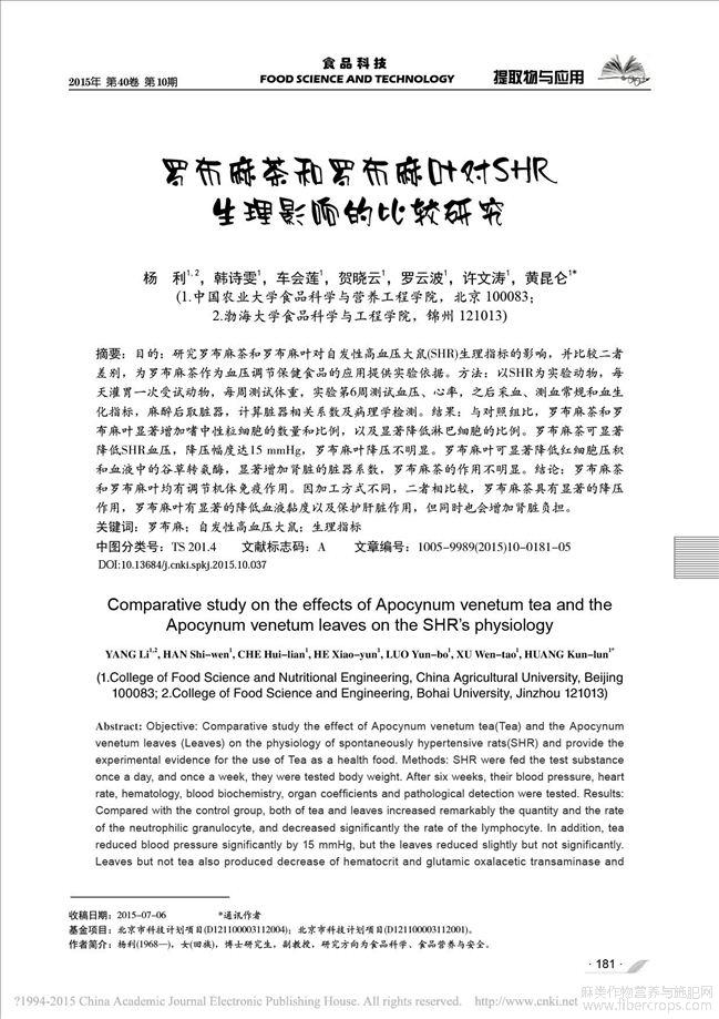 罗布麻茶和罗布麻叶对SHR生理影响的比较研究