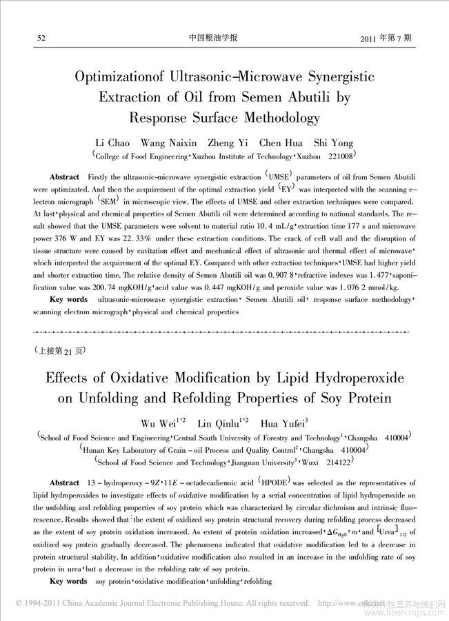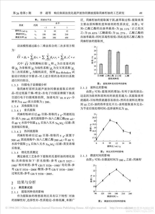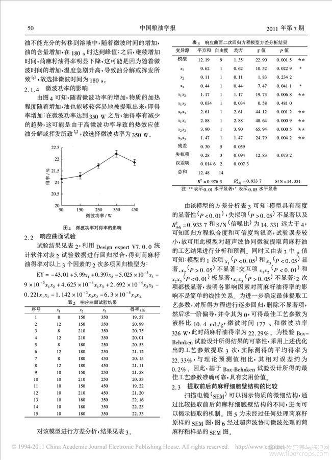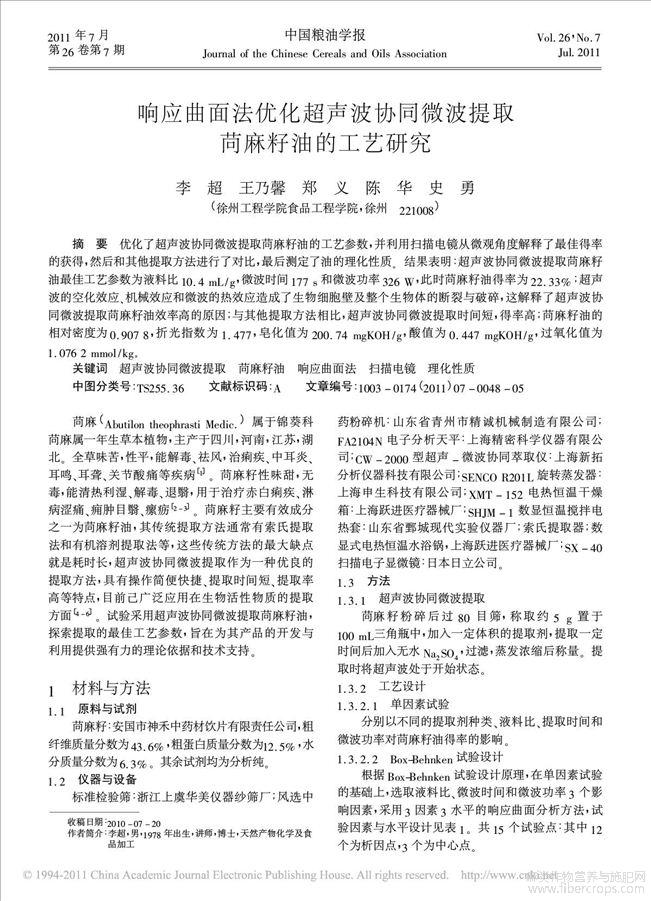 响应曲面法优化超声波协同微波提取苘麻籽油的工艺研究