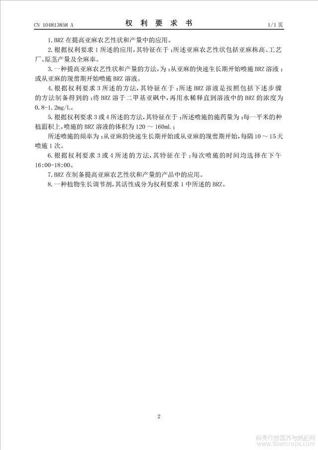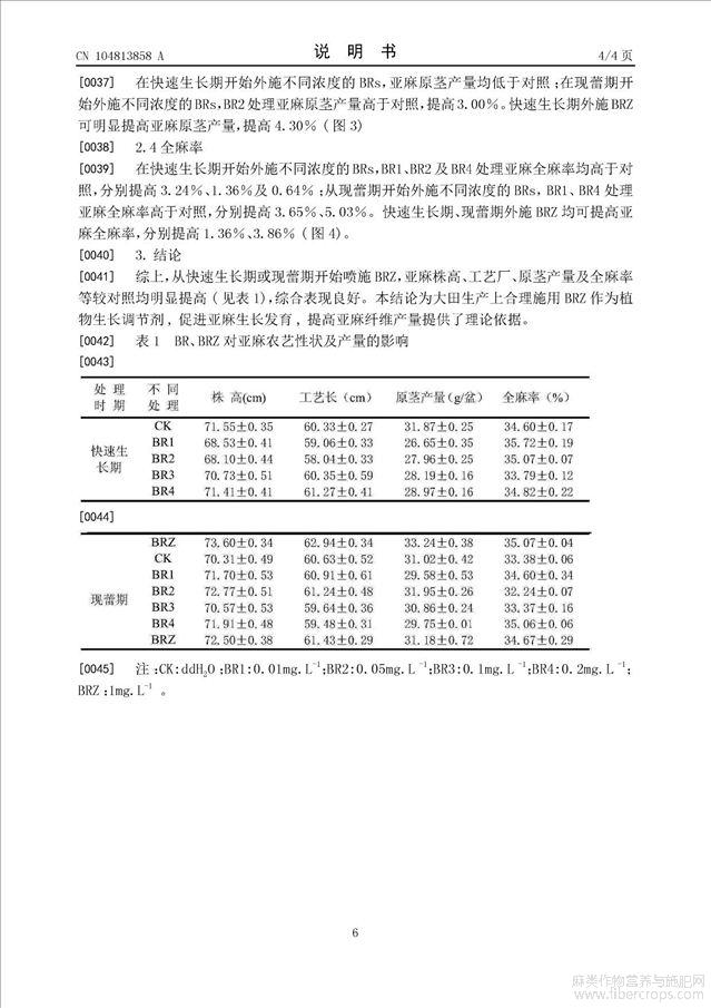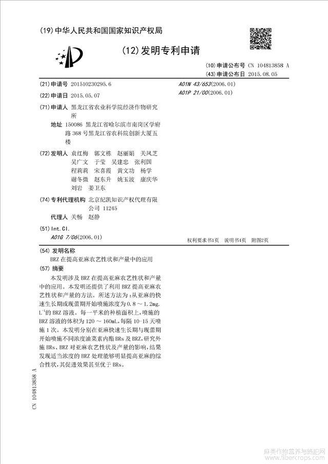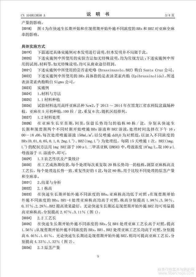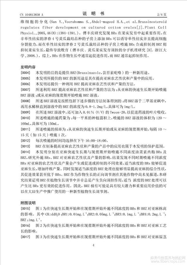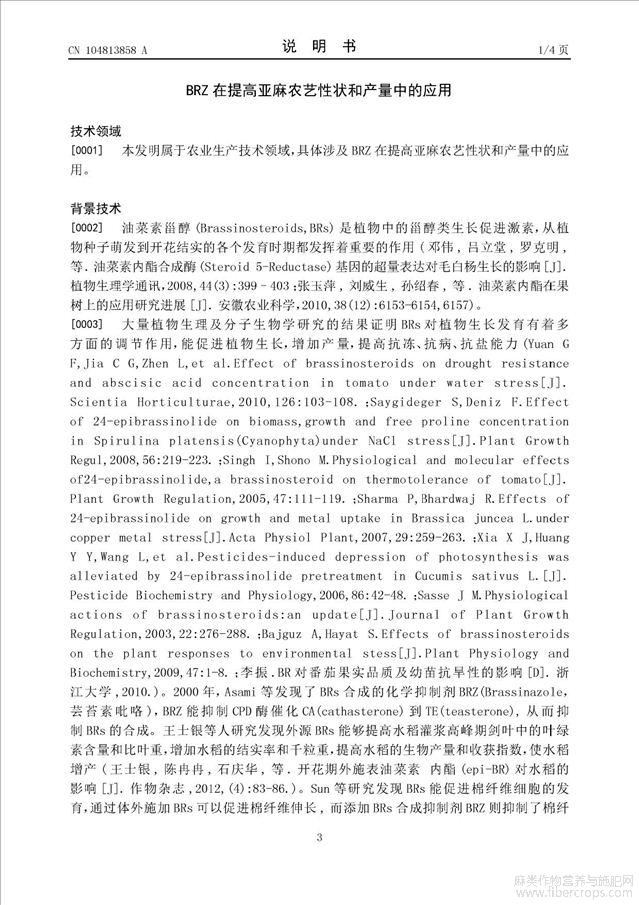 BRZ在提高亚麻农艺性状和产量中的应用(公开专利)