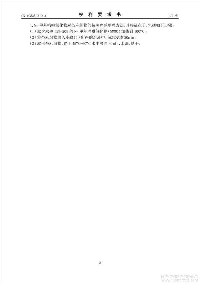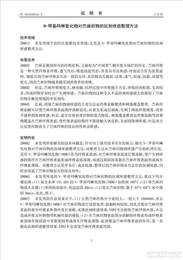 N-甲基吗啉氧化物对苎麻织物的抗刺痒感整理方法(公开专利)