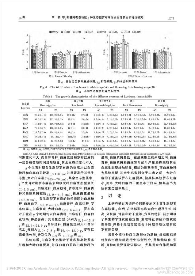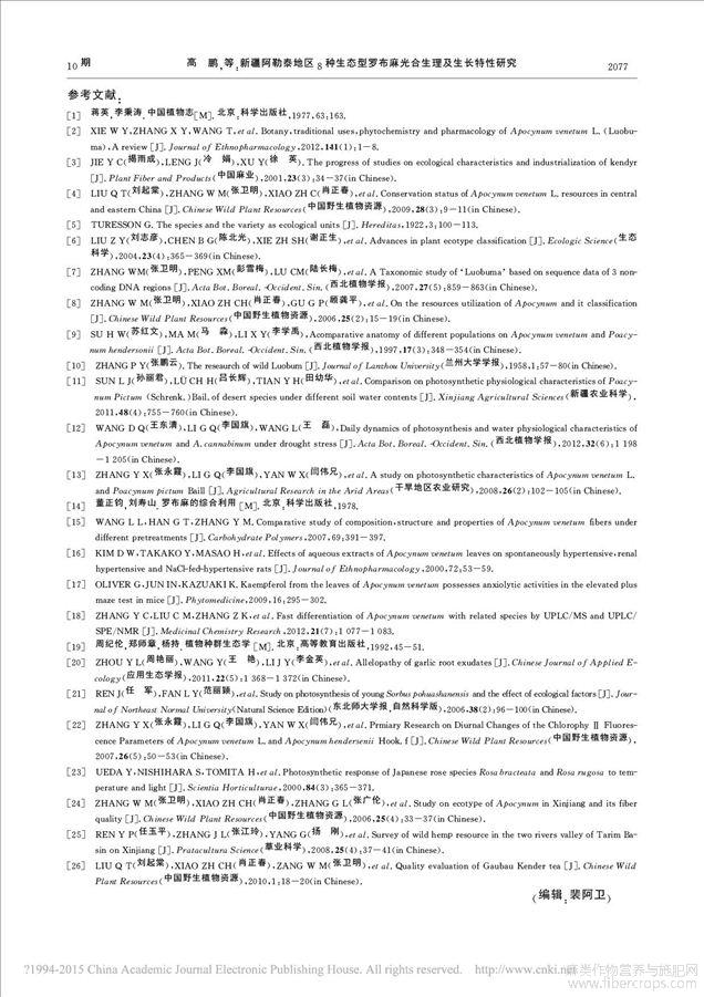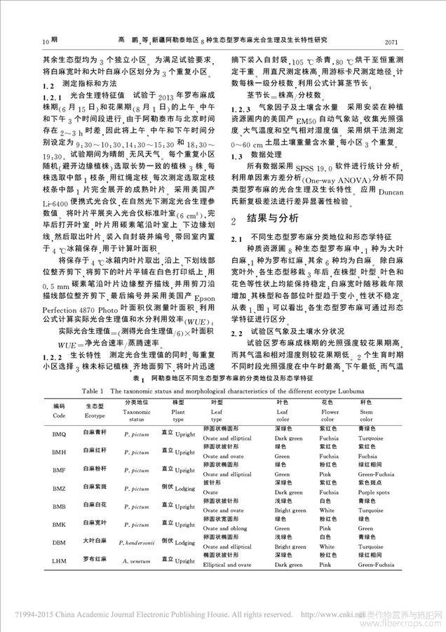 罗布麻的生长特点、纤维理化