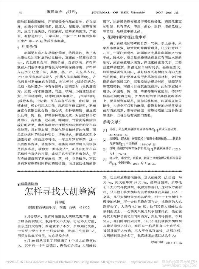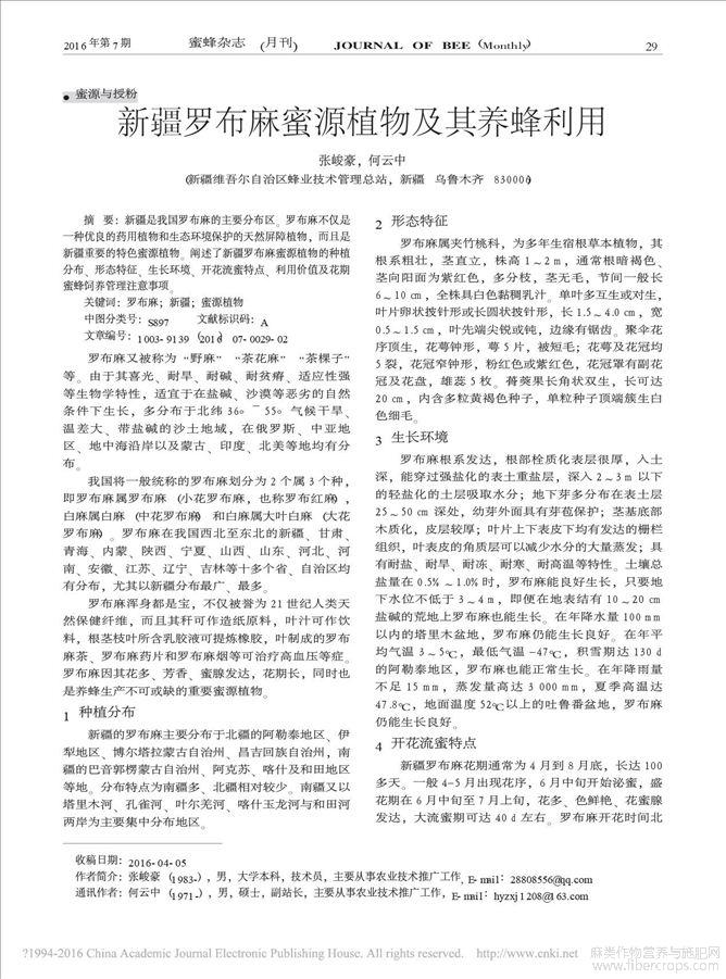 新疆罗布麻蜜源植物及其养蜂利用