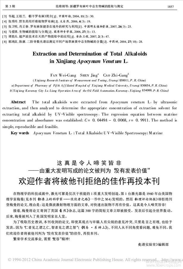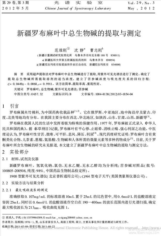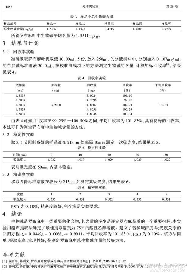 新疆罗布麻叶中总生物碱的提取与测定