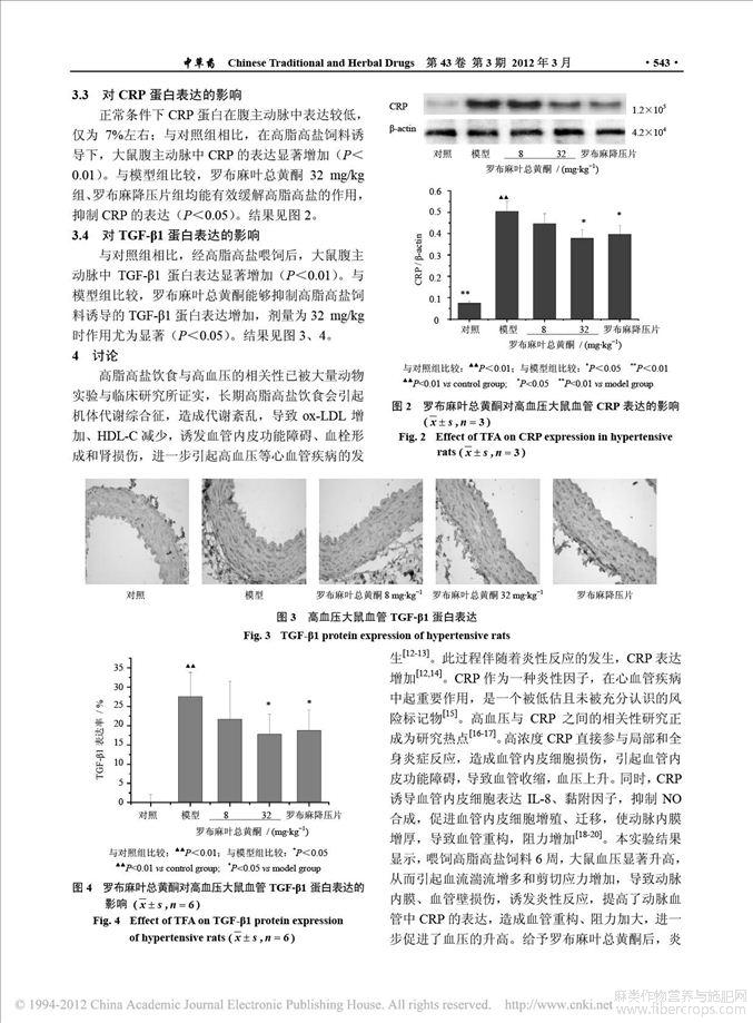罗布麻叶总黄酮对高脂高盐大鼠高血压的影响及其分子机制