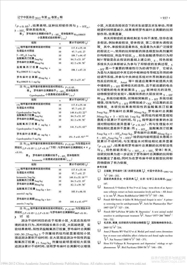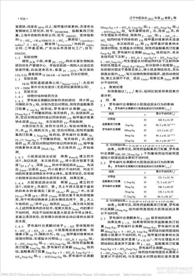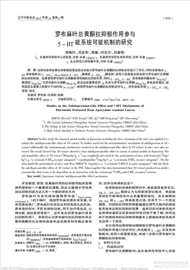罗布麻叶总黄酮抗抑郁作用参与5_HT能系统可能机制的研究