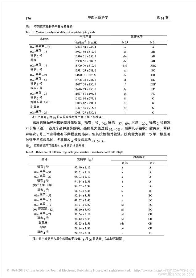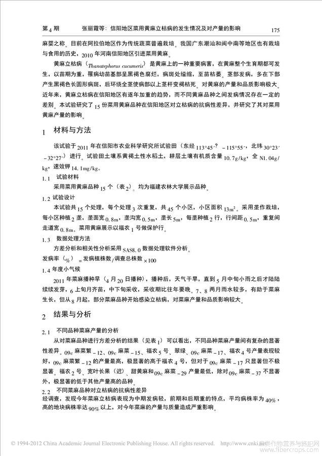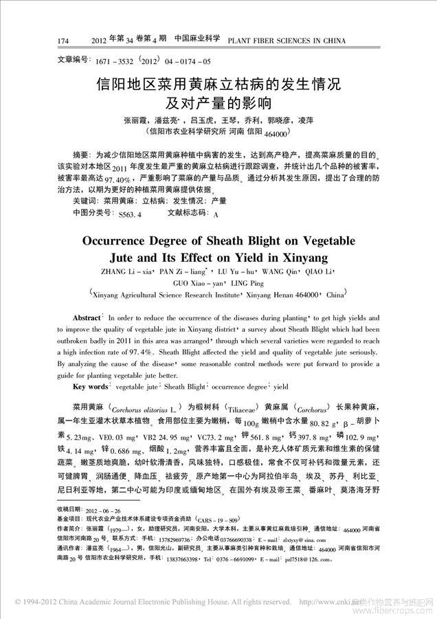 信阳地区菜用黄麻立枯病的发生情况及对产量的影响