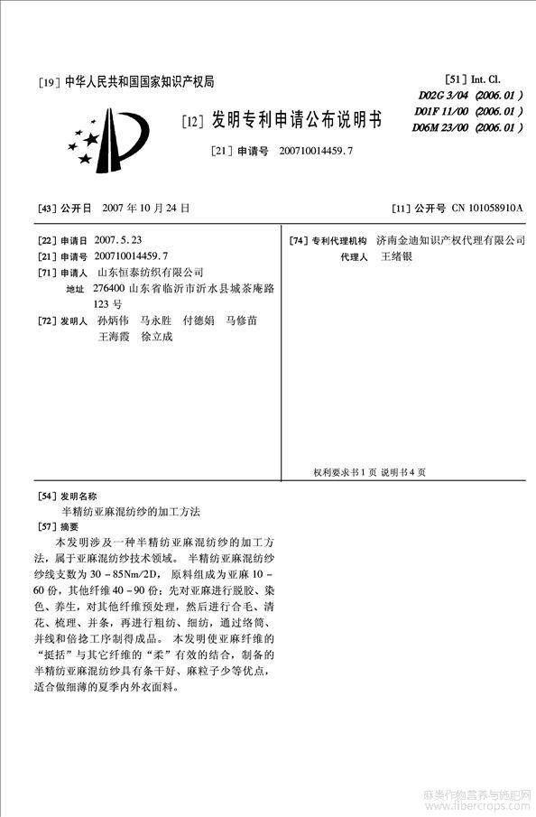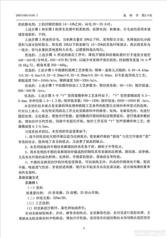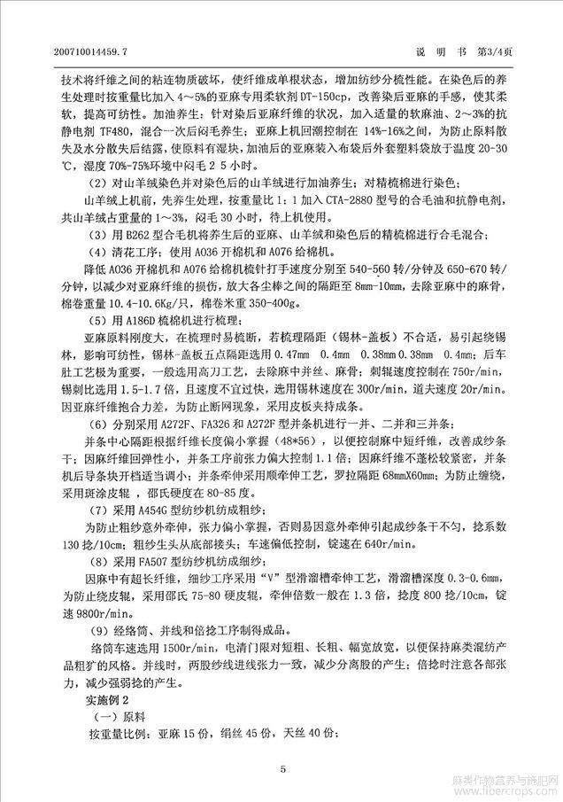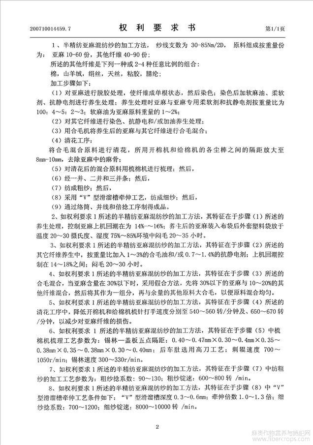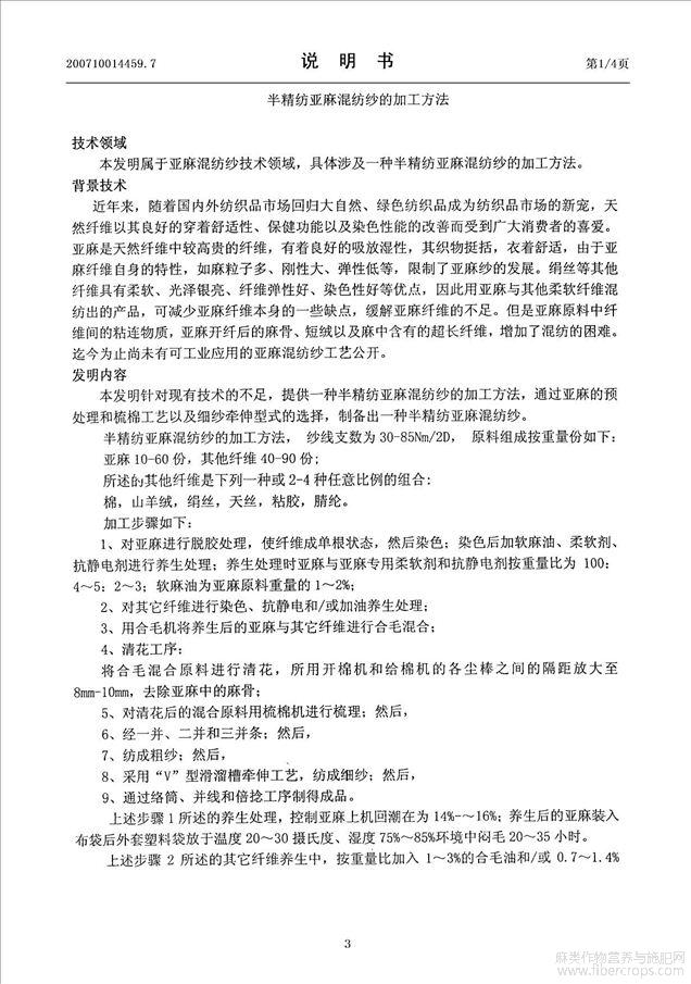 半精纺亚麻混纺纱的加工方法(公开专利)