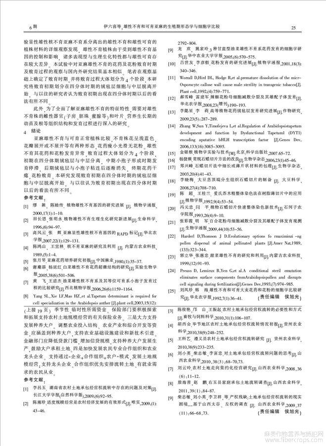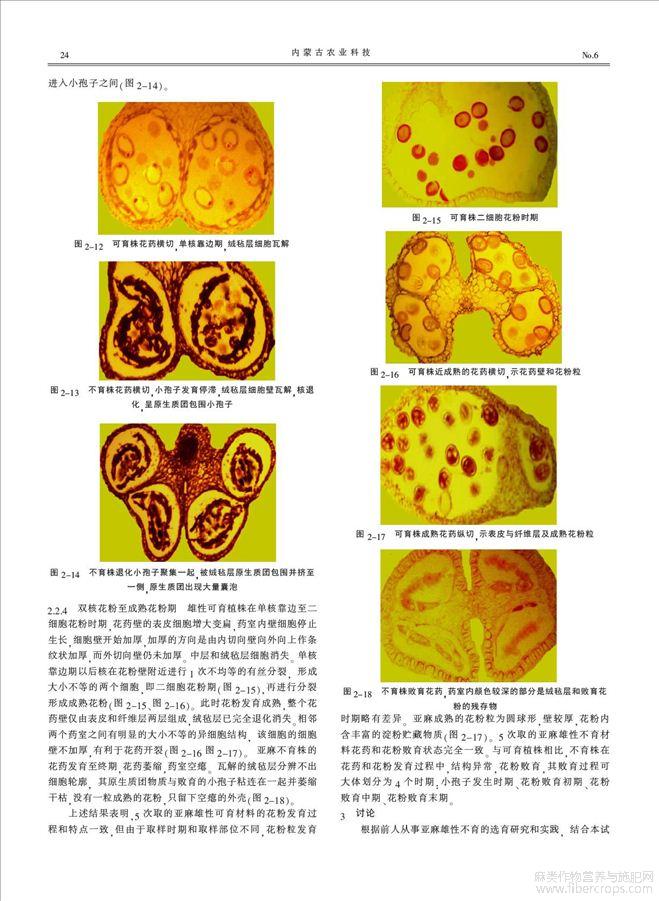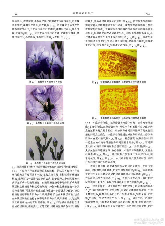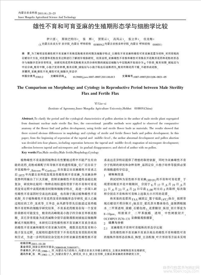 雄性不育和可育亚麻的生殖期形态学与细胞学比较