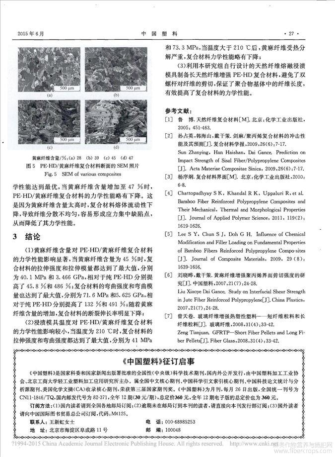 熔融浸渍法制备PE_HD_黄麻纤维复合材料工艺及性能研究