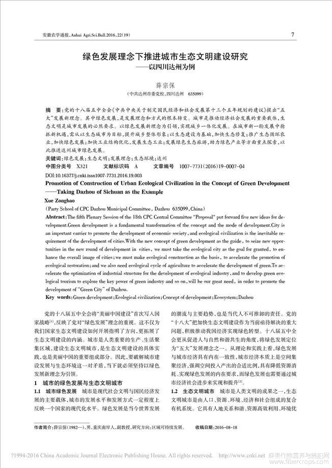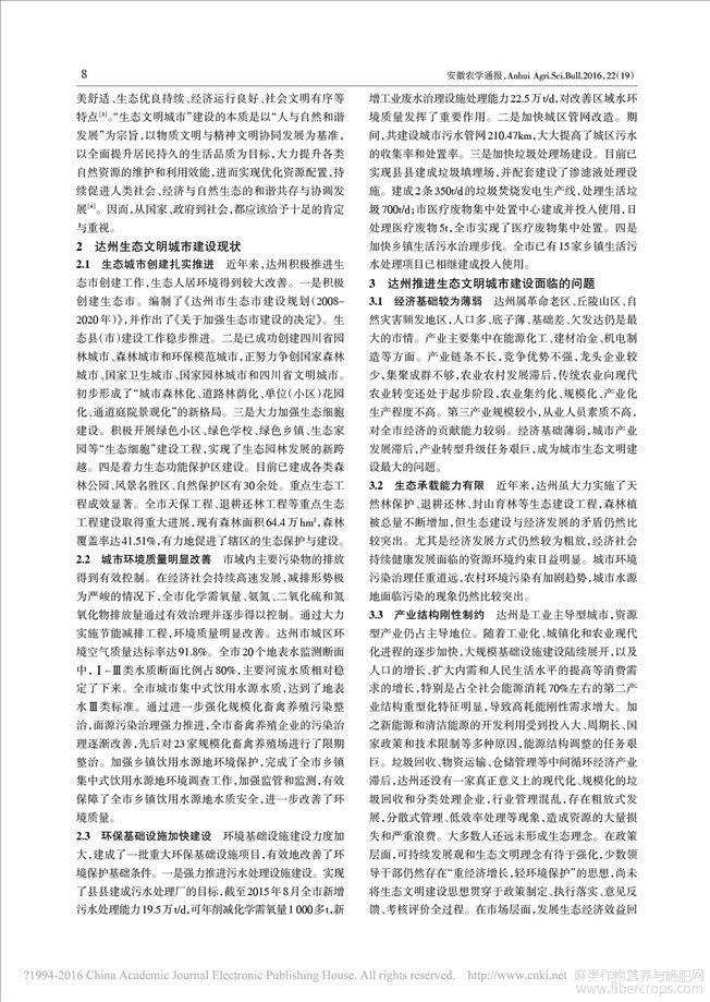 绿色发展理念下推进城市生态文明建设研究_以四川达州为例