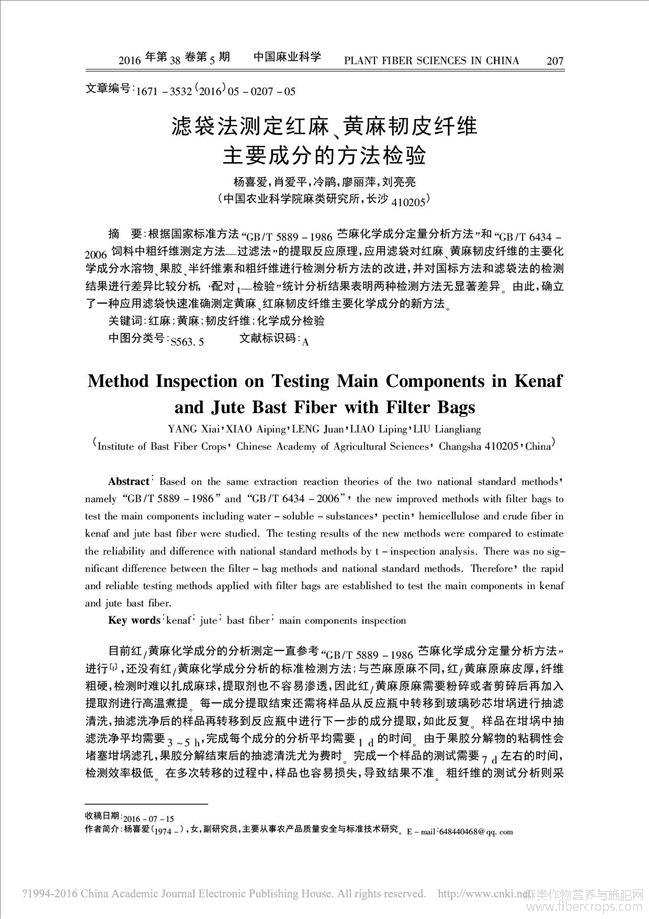 滤袋法测定红麻_黄麻韧皮纤维主要成分的方法检验