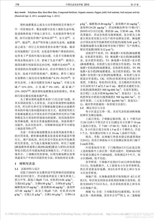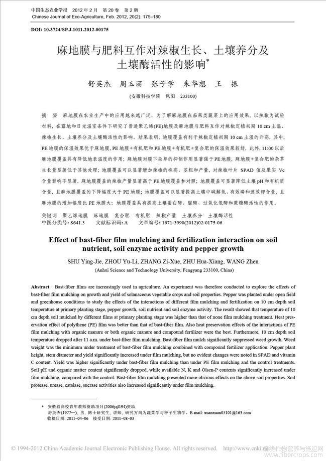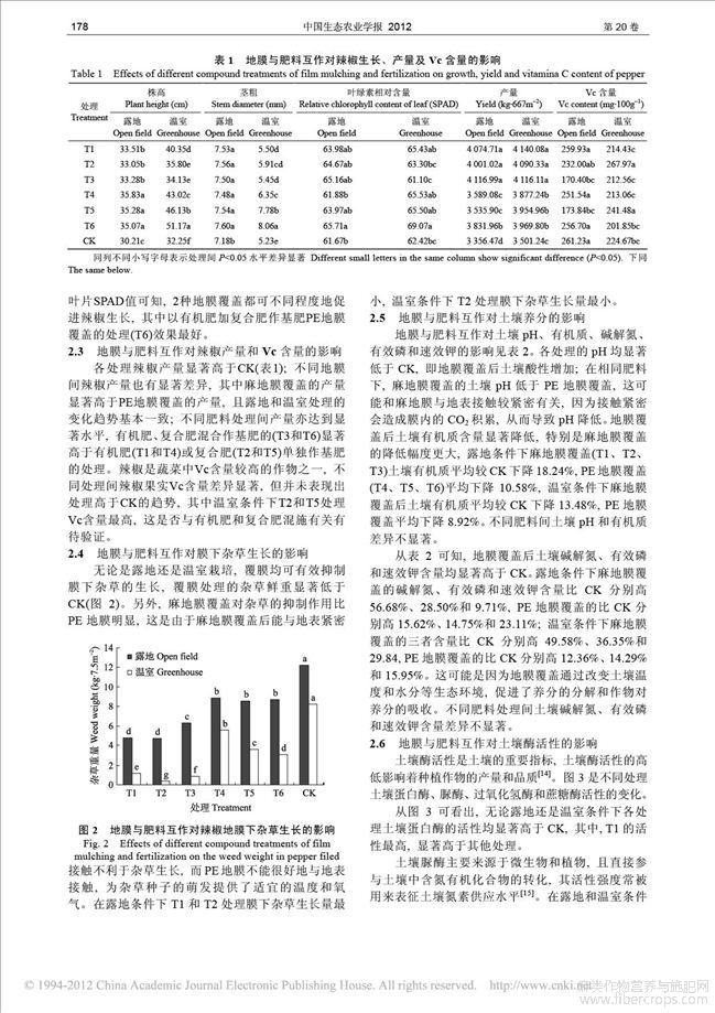 麻地膜与肥料互作对辣椒生长_土壤养分及土壤酶活性的影响