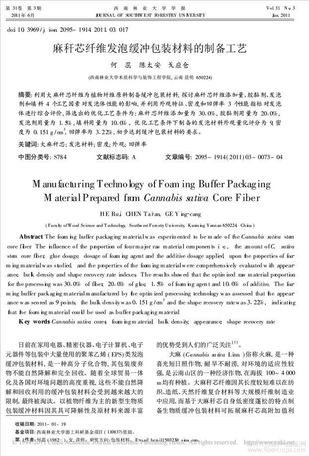 麻秆芯纤维发泡缓冲包装材料的制备工艺