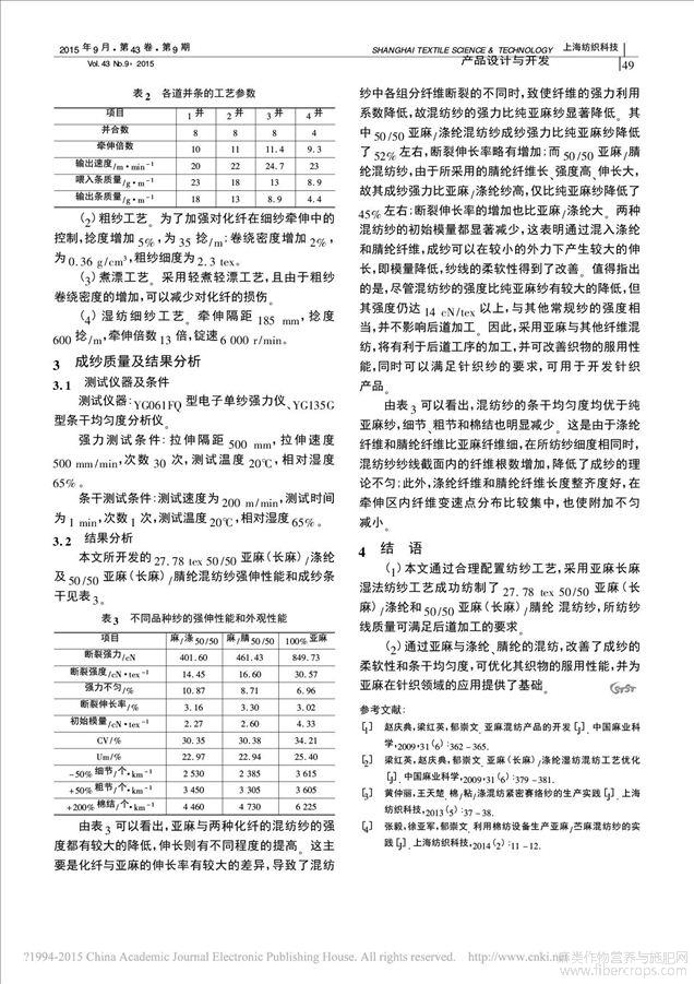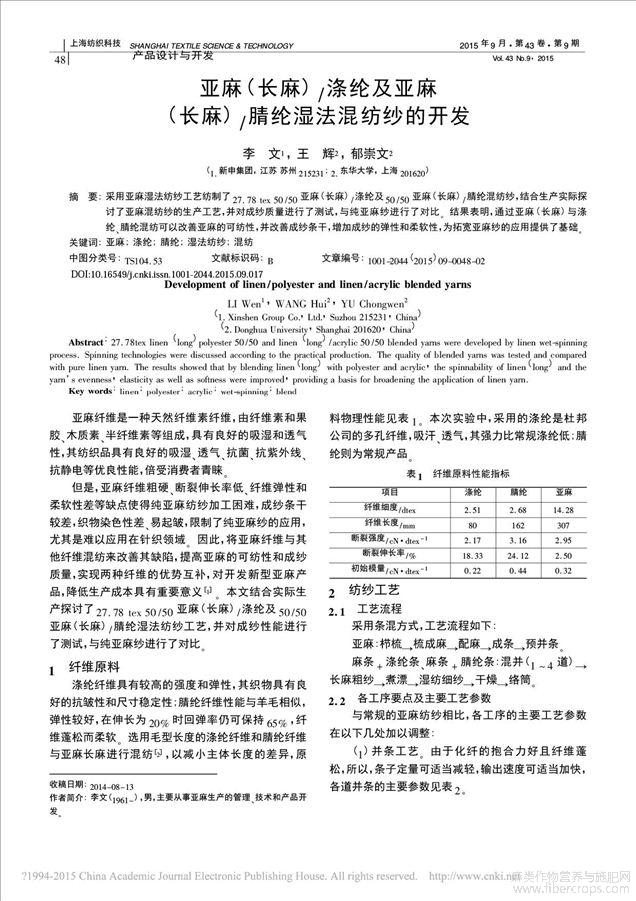 亚麻_长麻_涤纶及亚麻_长麻_腈纶湿法混纺纱的开发
