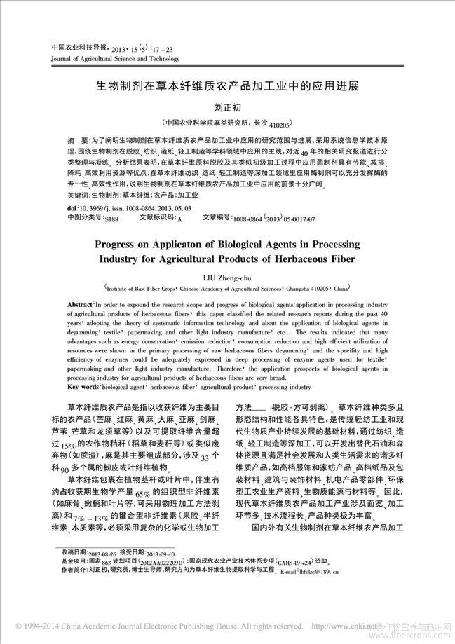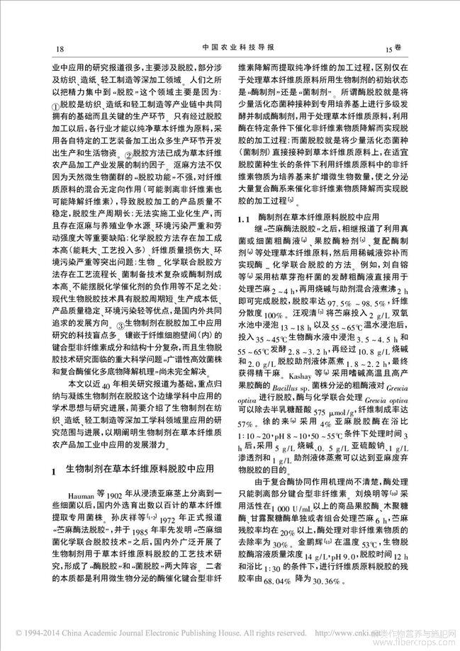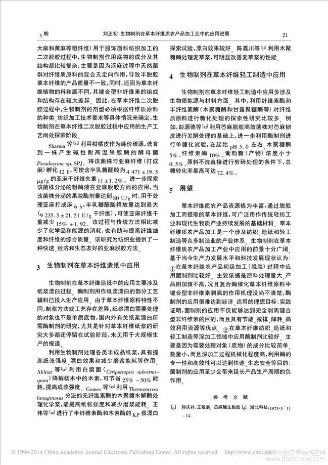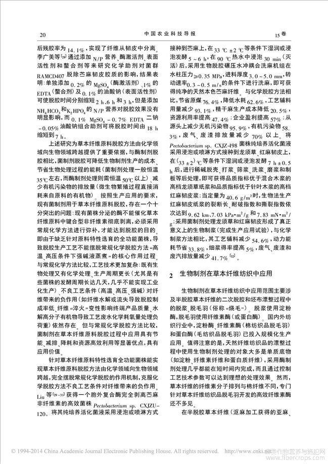 生物制剂在草本纤维质农产品加工业中的应用进展