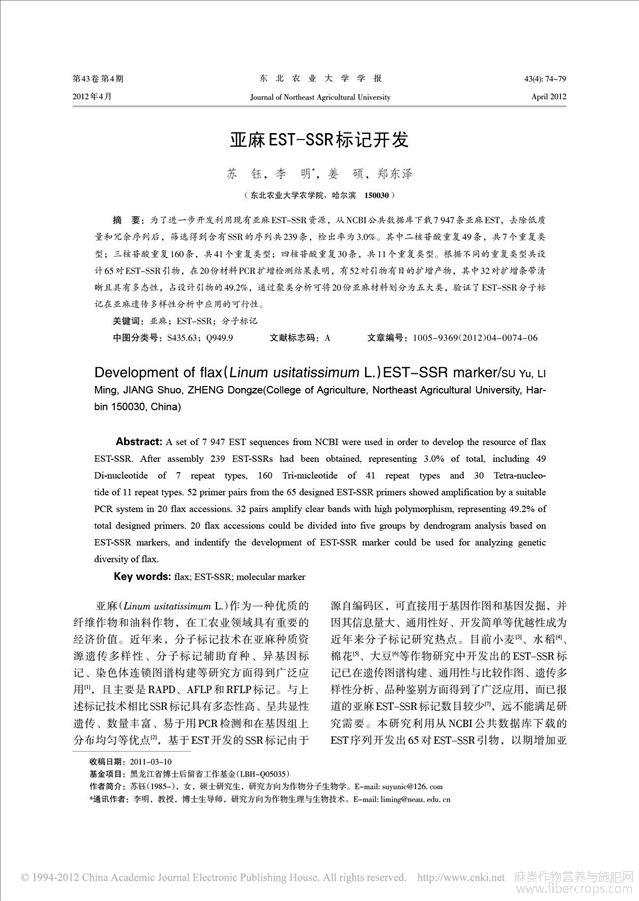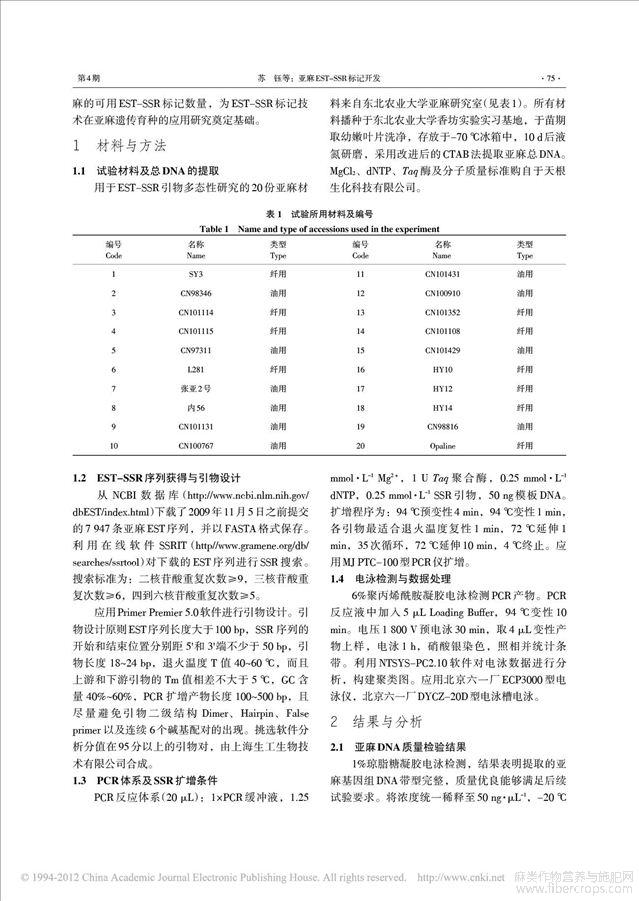 亚麻EST_SSR标记开发