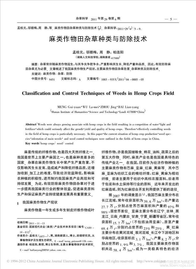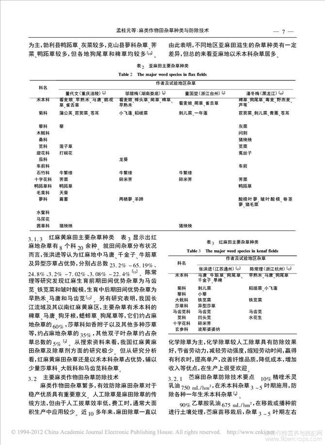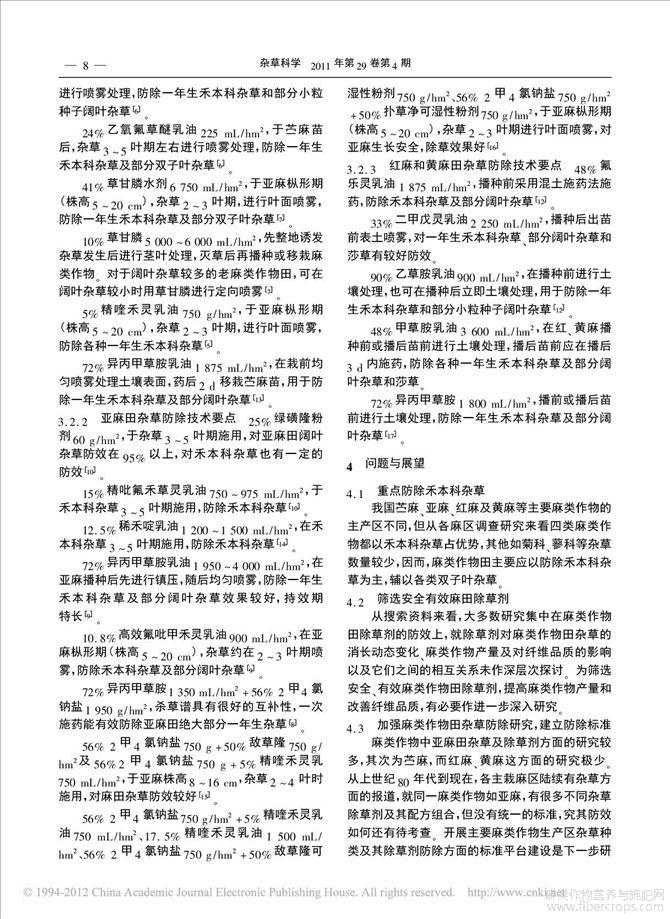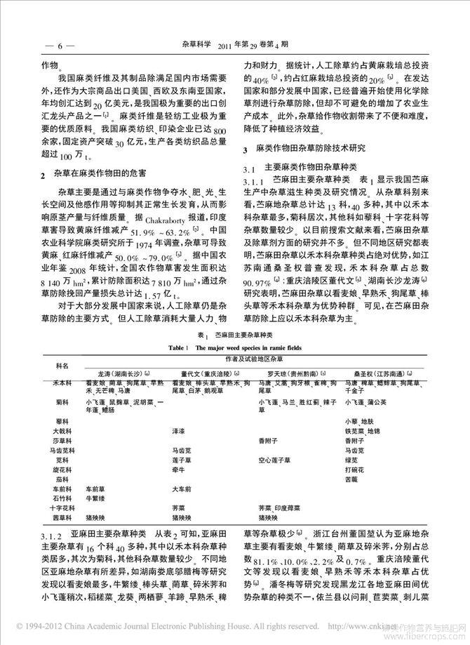 麻类作物田杂草种类与防除技术