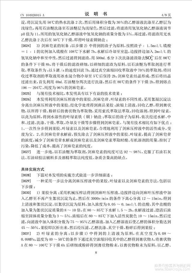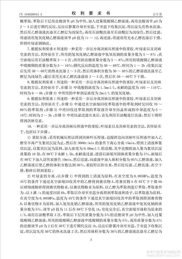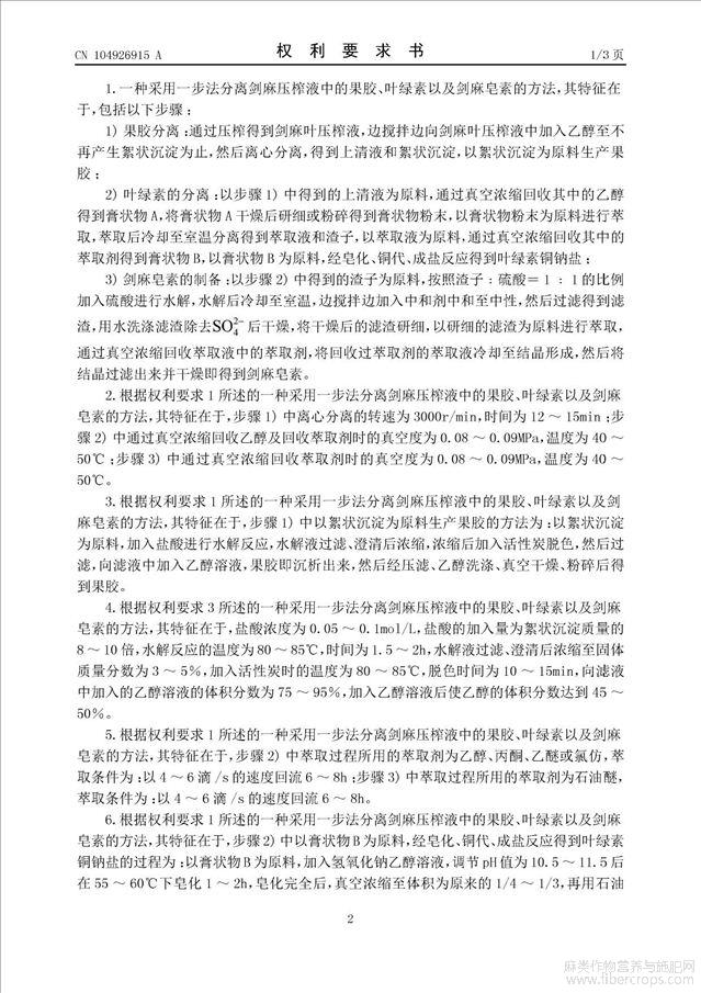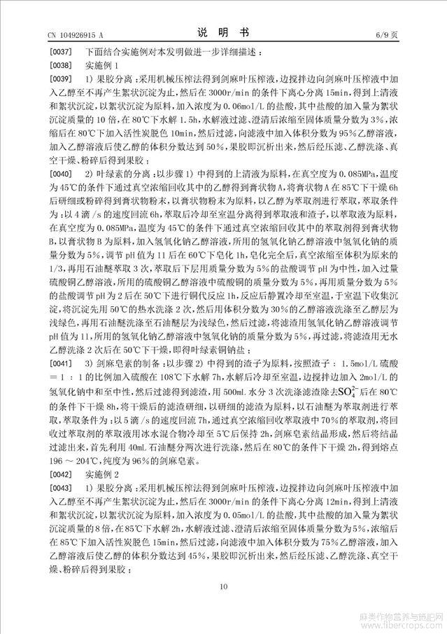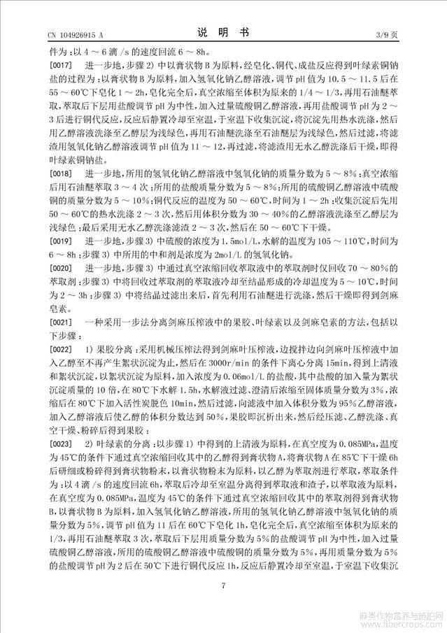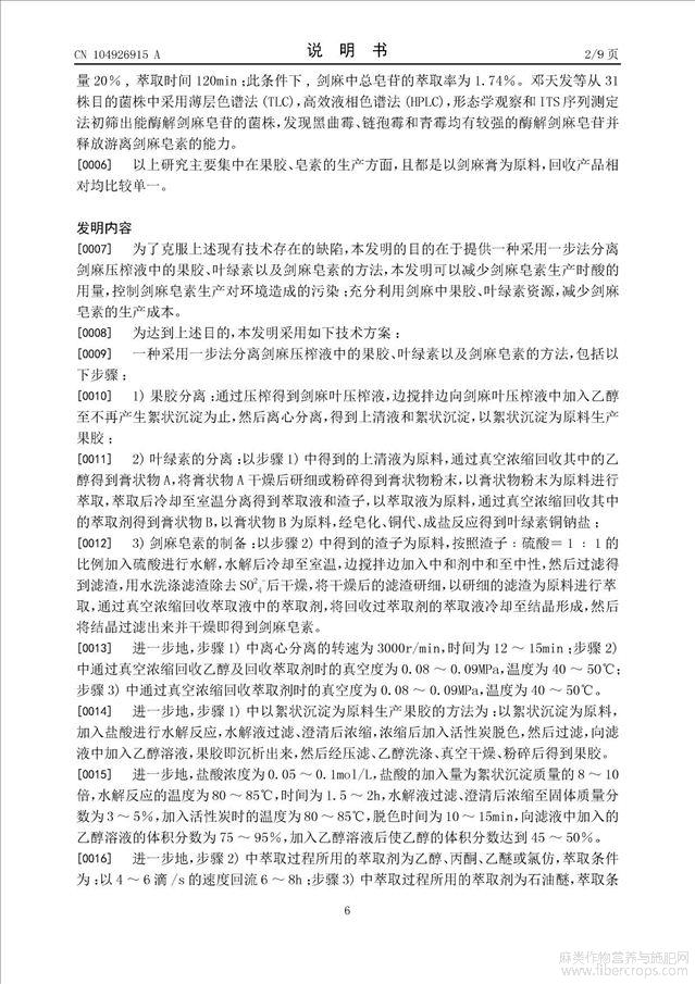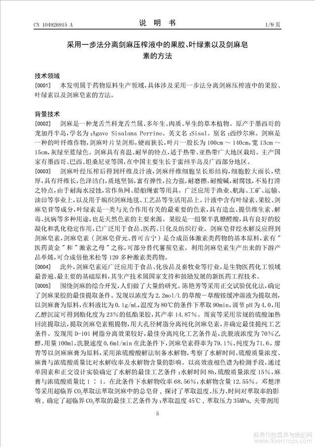 采用一步法分离剑麻压榨液中的果胶、叶绿素以及剑麻皂素的方法(公开专利)