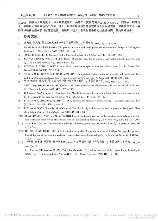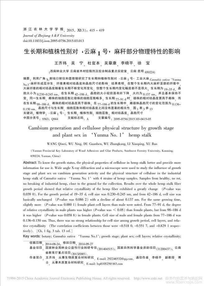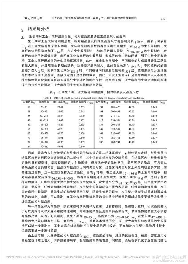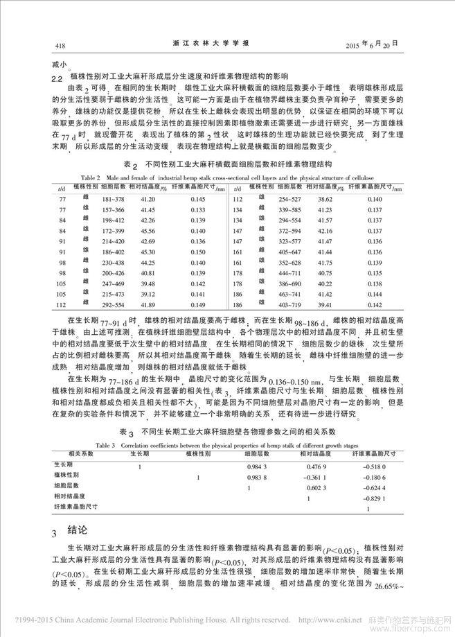 生长期和植株性别对_云麻1号_麻秆部分物理特性的影响
