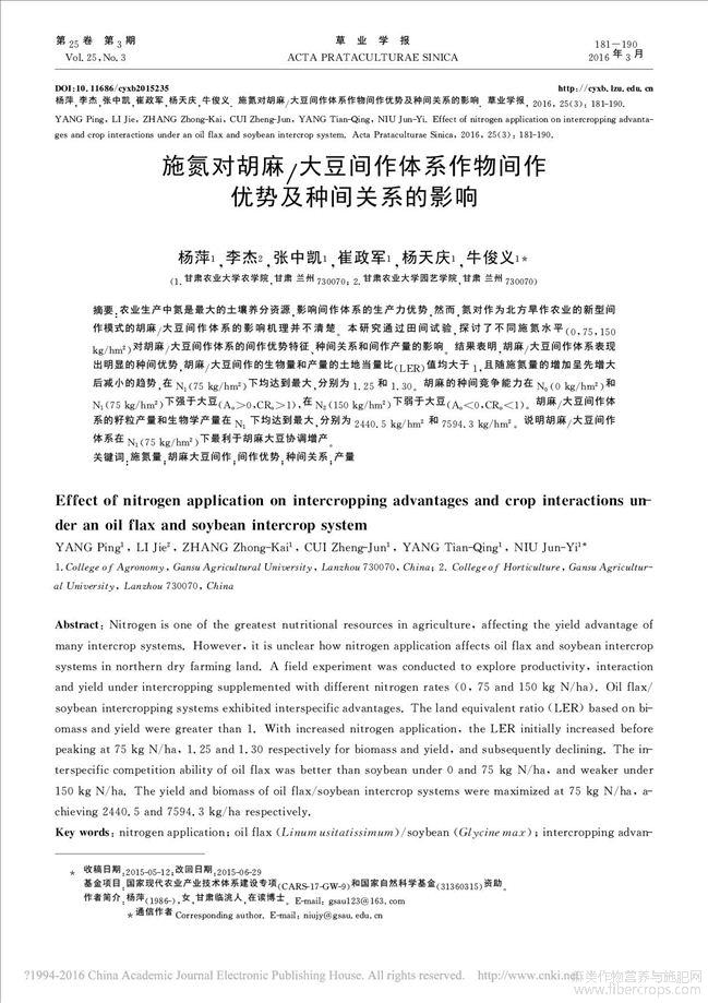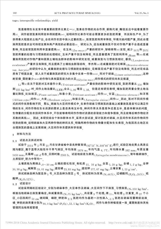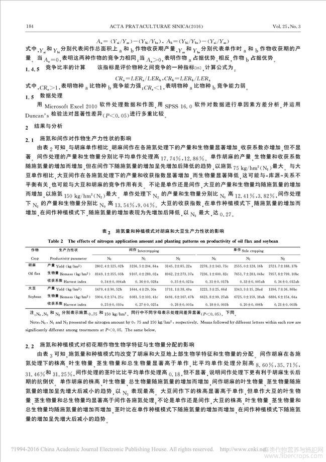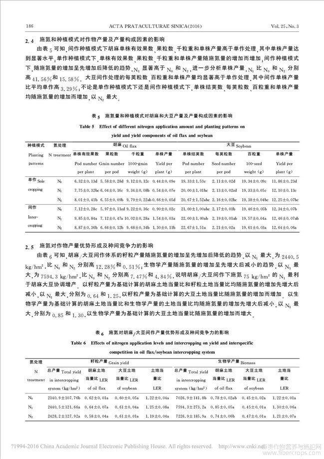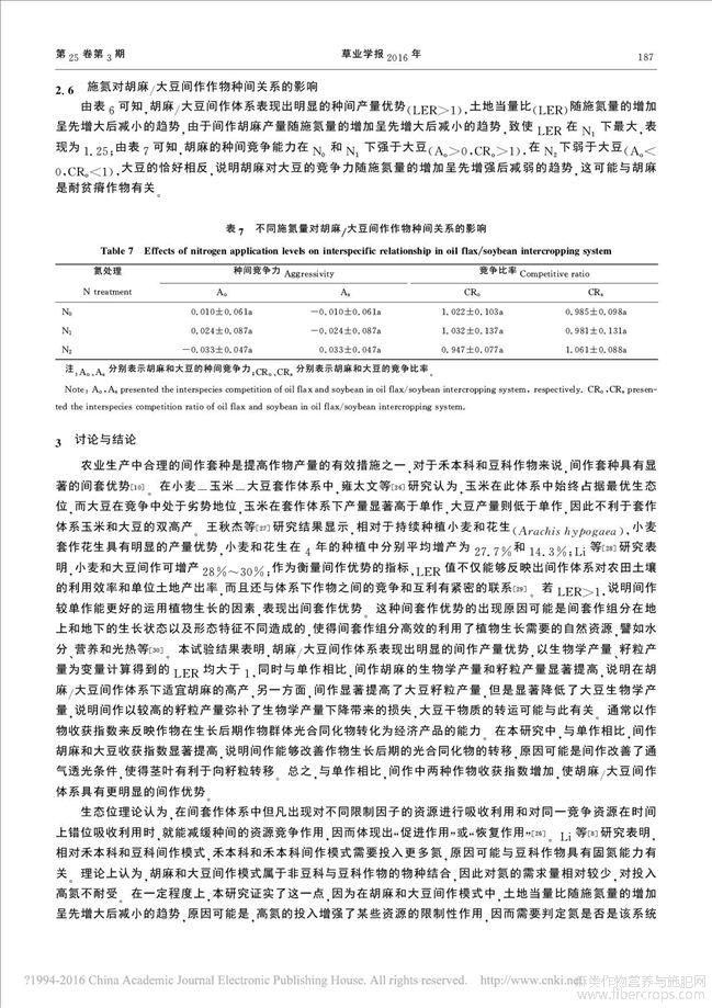 施氮对胡麻_大豆间作体系作物间作优势及种间关系的影响