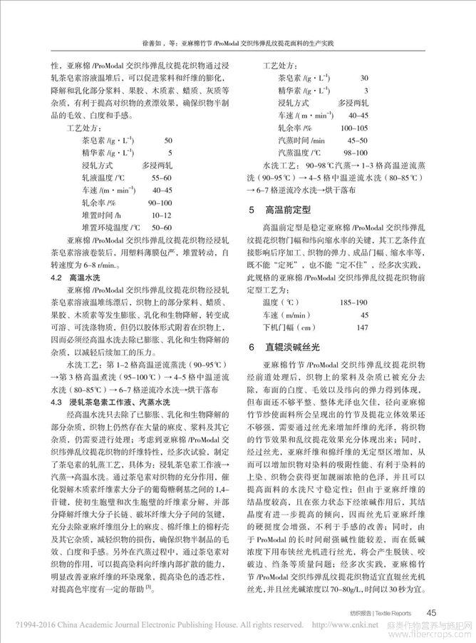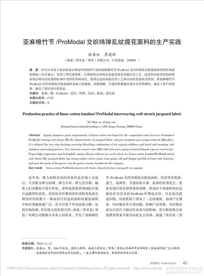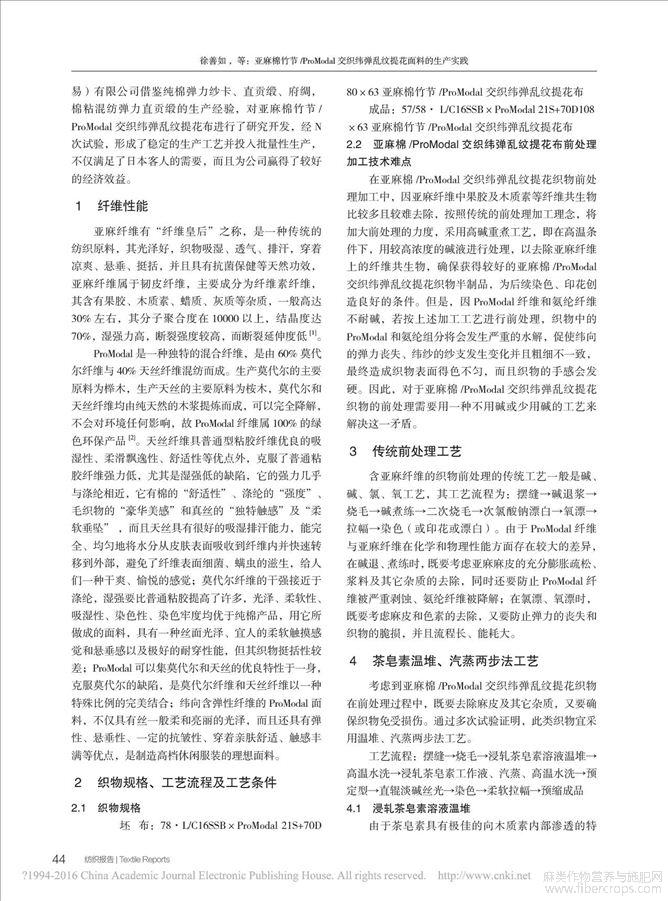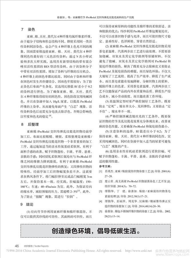亚麻棉竹节_ProModal交织纬弹乱纹提花面料的生产实践