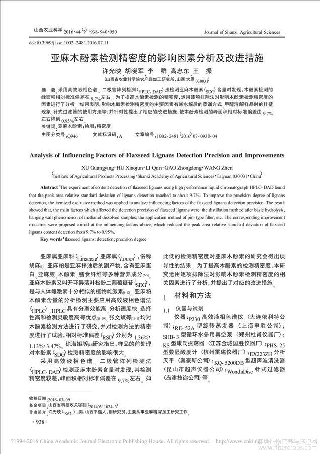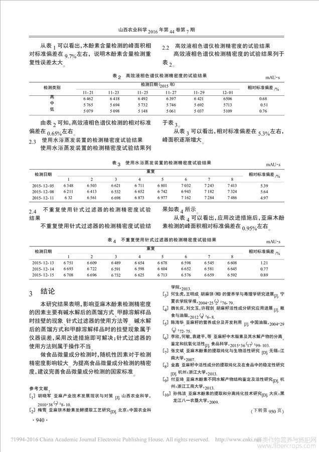 亚麻木酚素检测精密度的影响因素分析及改进措施