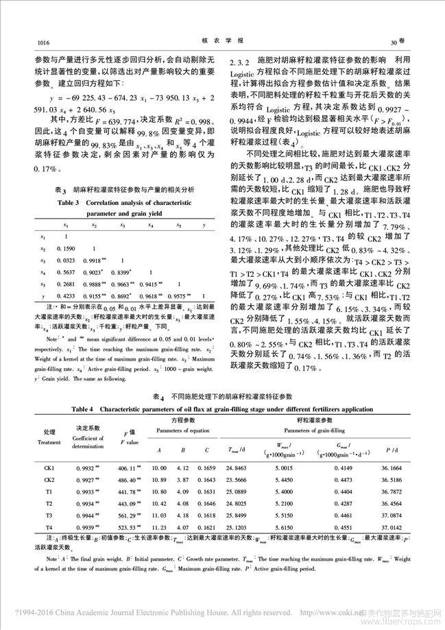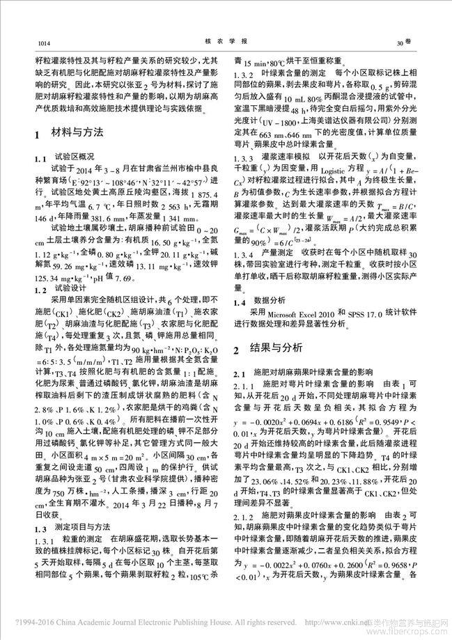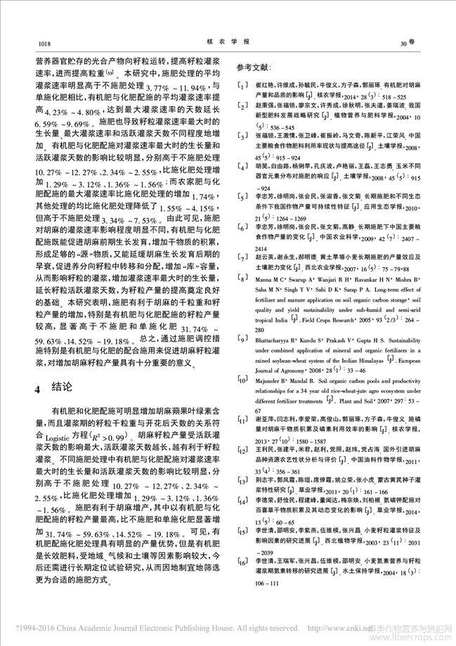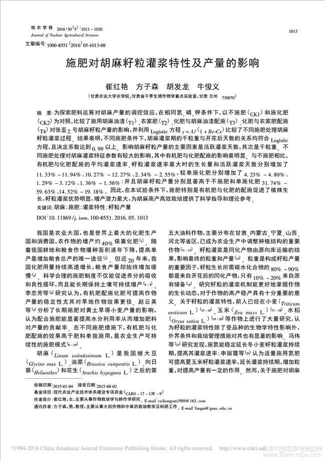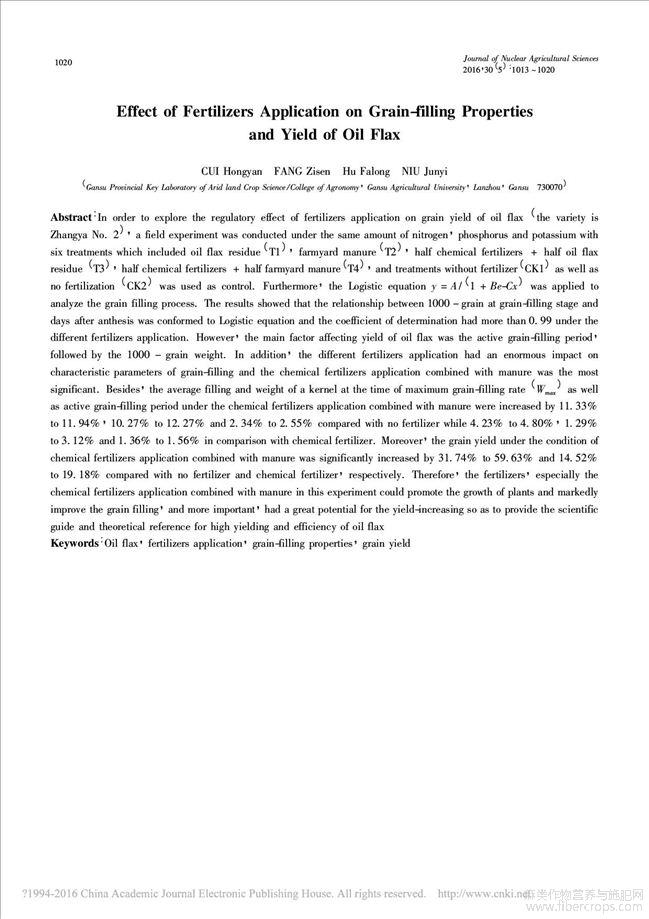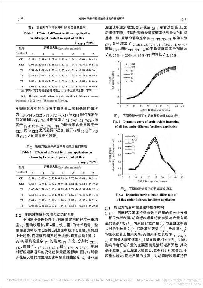 施肥对胡麻籽粒灌浆特性及产量的影响
