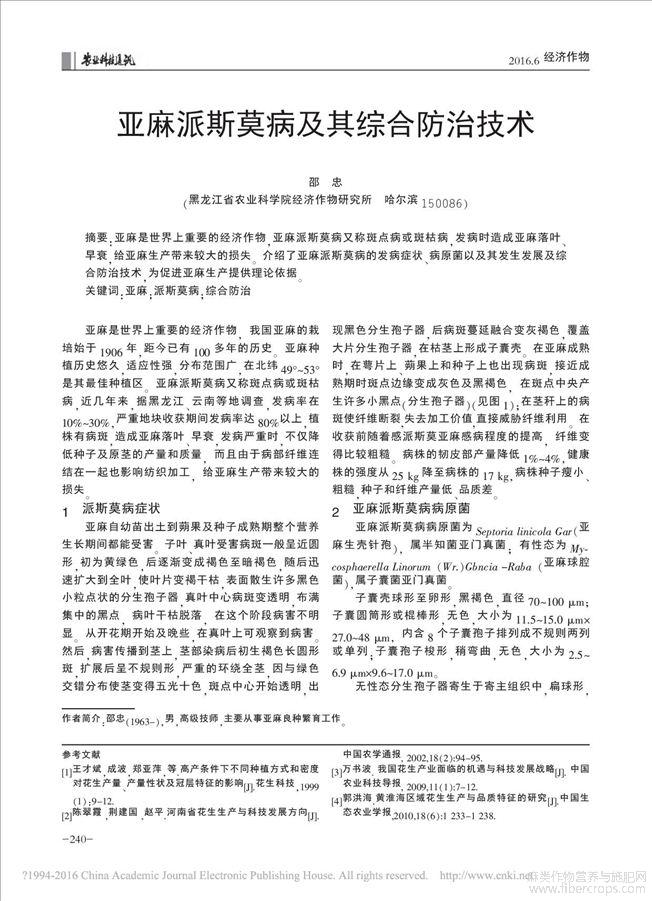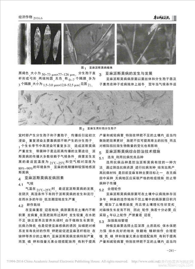 亚麻派斯莫病及其综合防治技术