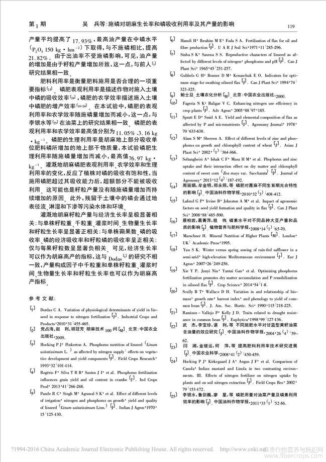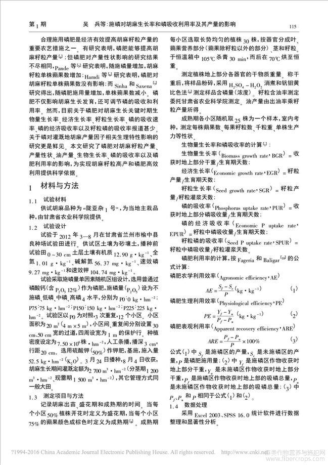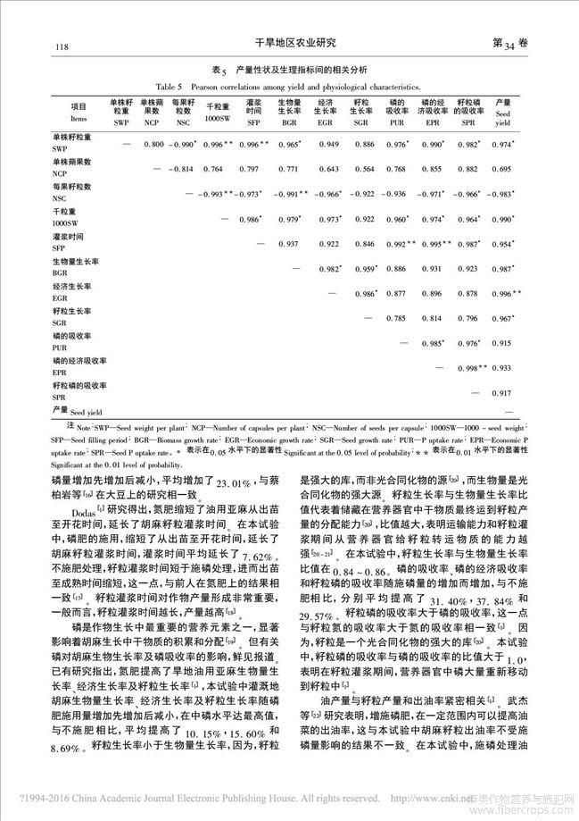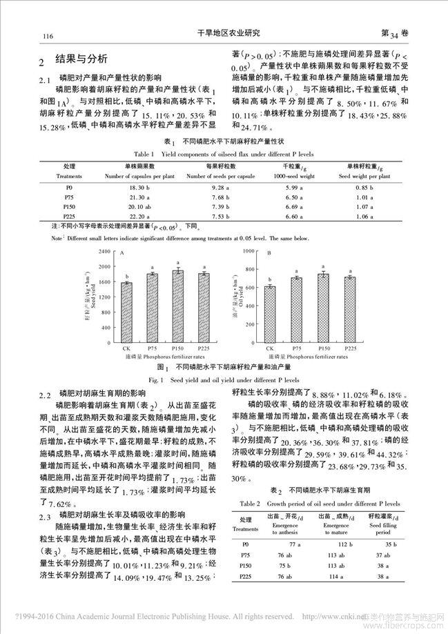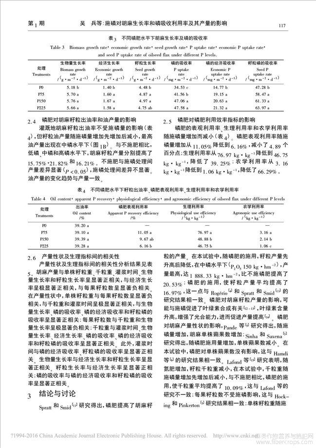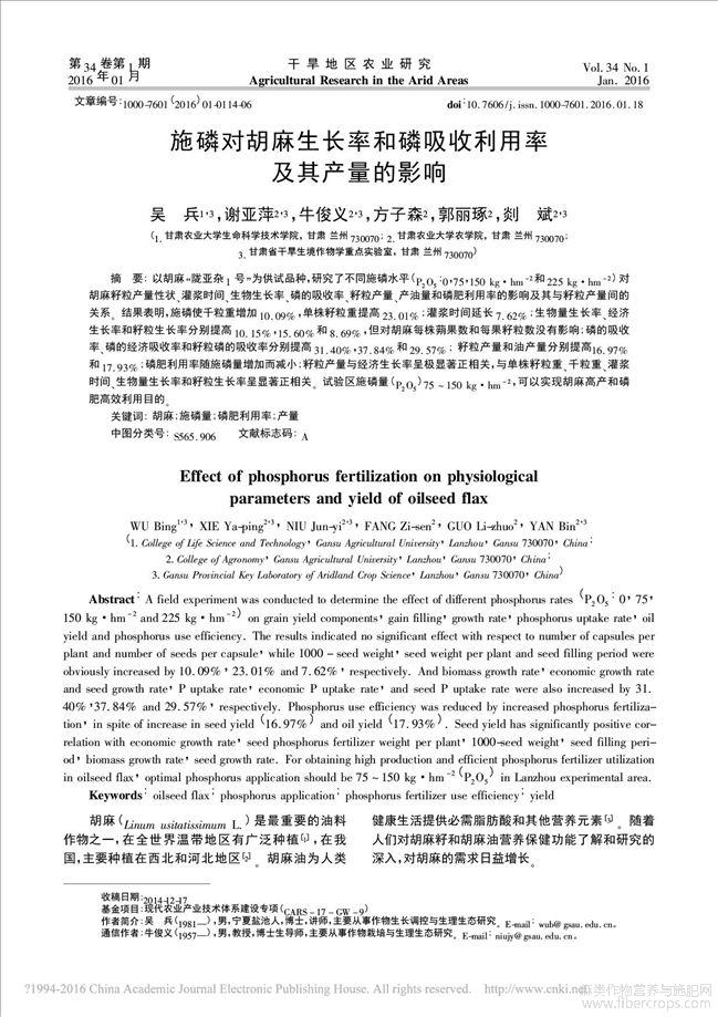施磷对胡麻生长率和磷吸收利用率及其产量的影响