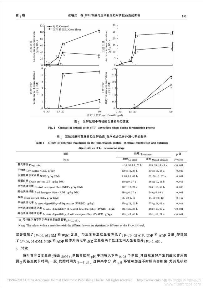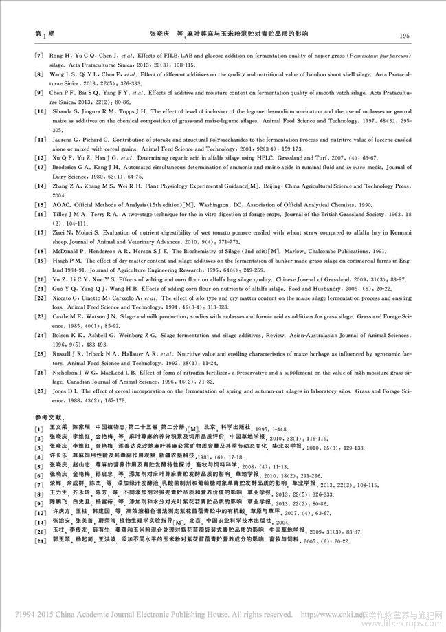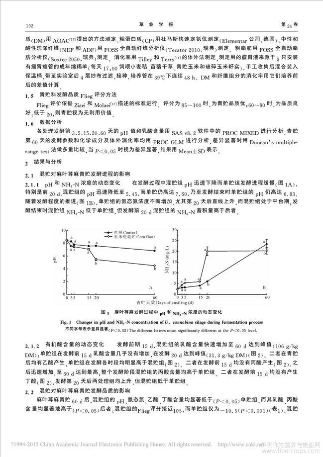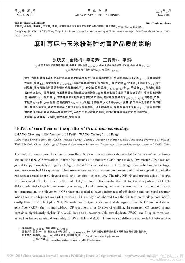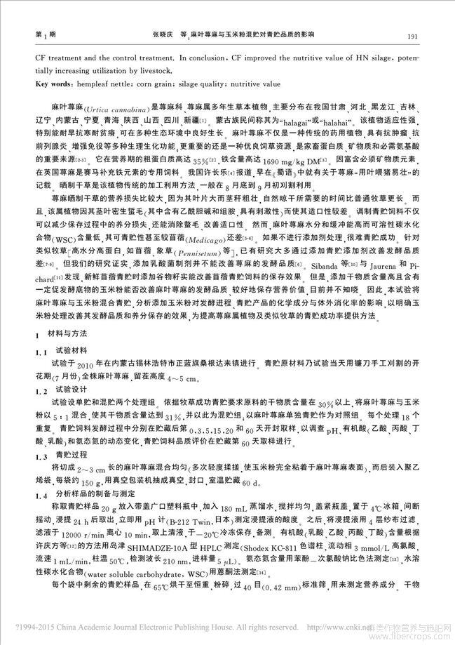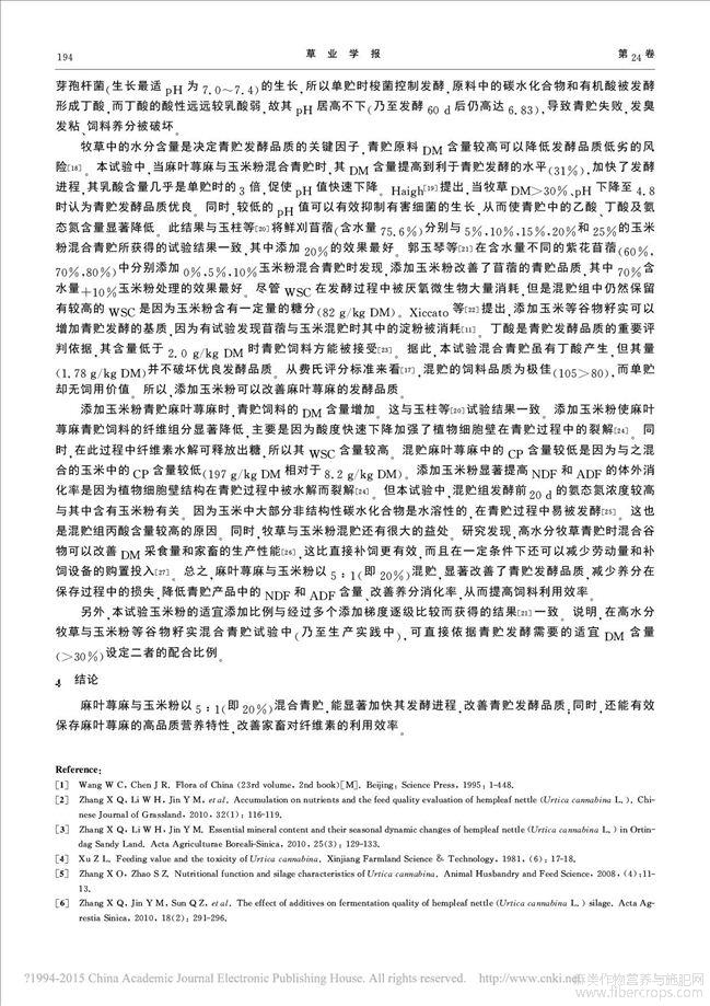 麻叶荨麻与玉米粉混贮对青贮品质的影响